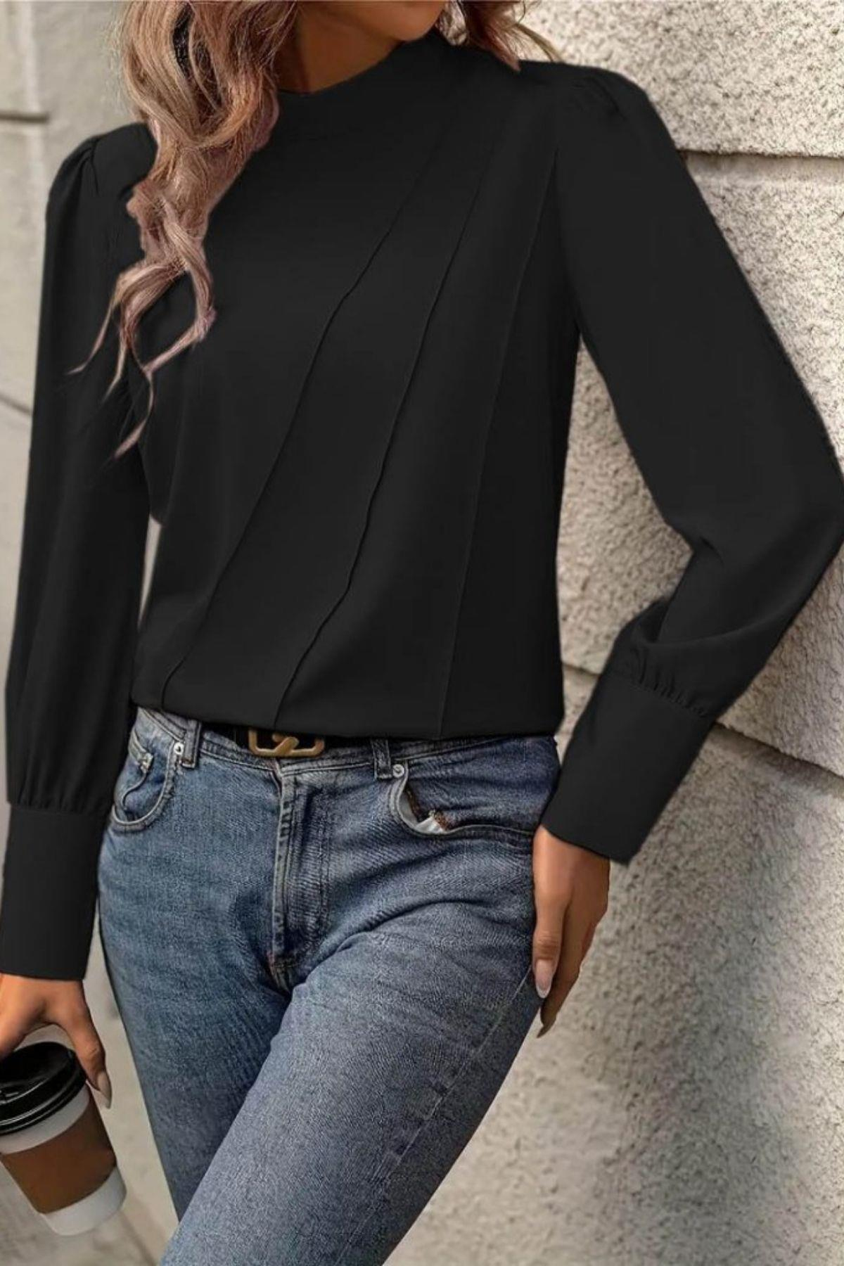Gardırobunuzun temel parçalarından biri olmaya aday, modern ve zarif bu pili detaylı bluz ile tanışın. Klasik bluzlara yenilikçi bir yaklaşım getiren bu parça, hem ofis hem de günlük şıklık için ideal bir seçimdir.