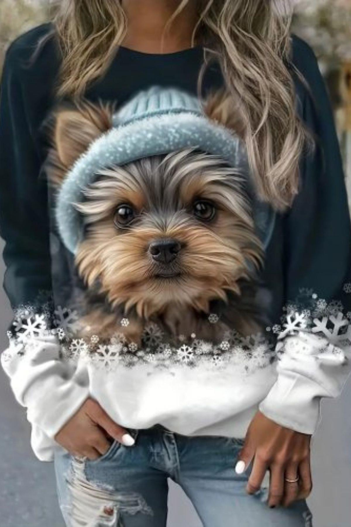Bisiklet Yaka Baskılı Şardonlu Dalgıç Bluz Lacivert