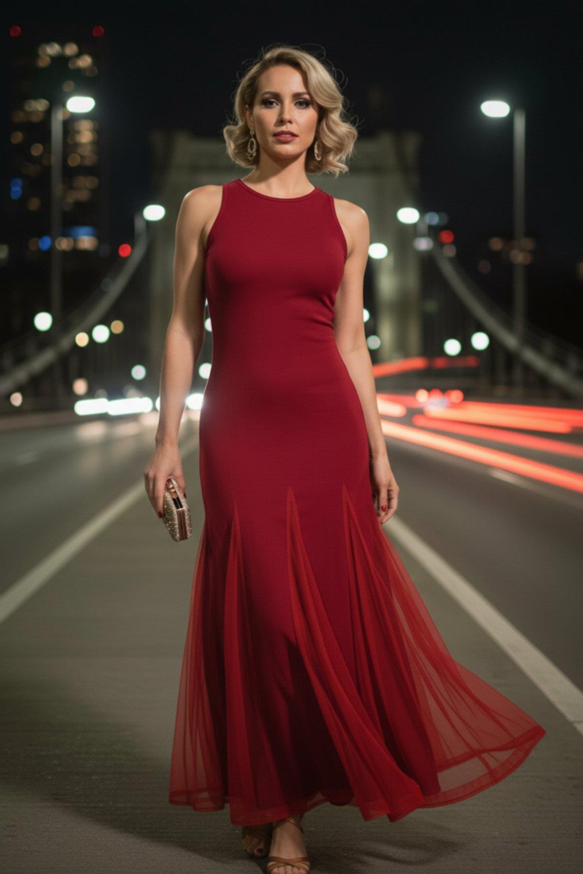 Özel gecelerinizde tüm bakışları üzerinizde toplamaya hazır mısınız? mossta.com koleksiyonunun öne çıkan parçalarından olan bu gece elbisesi, klasik balık formunu modern tül detaylarla birleştiriyor. Vücudu kusursuzca saran esnek kumaşı ve diz altından itibaren genişleyen hareketli tül panelleriyle hem şıklığı hem de konforu bir arada sunuyor.