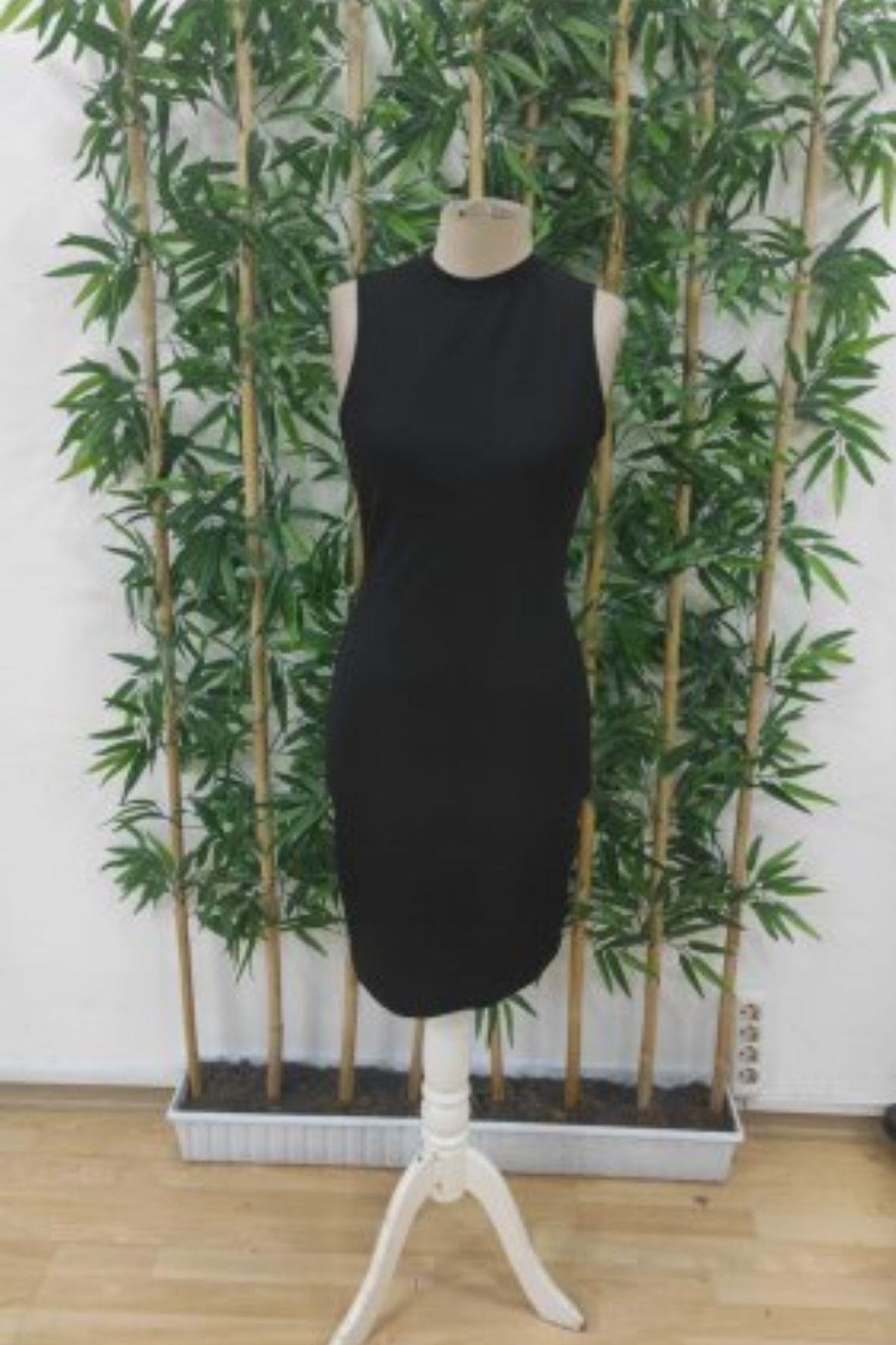 Bisiklet Yaka Kolsuz Bodycon Elbise - Siyah