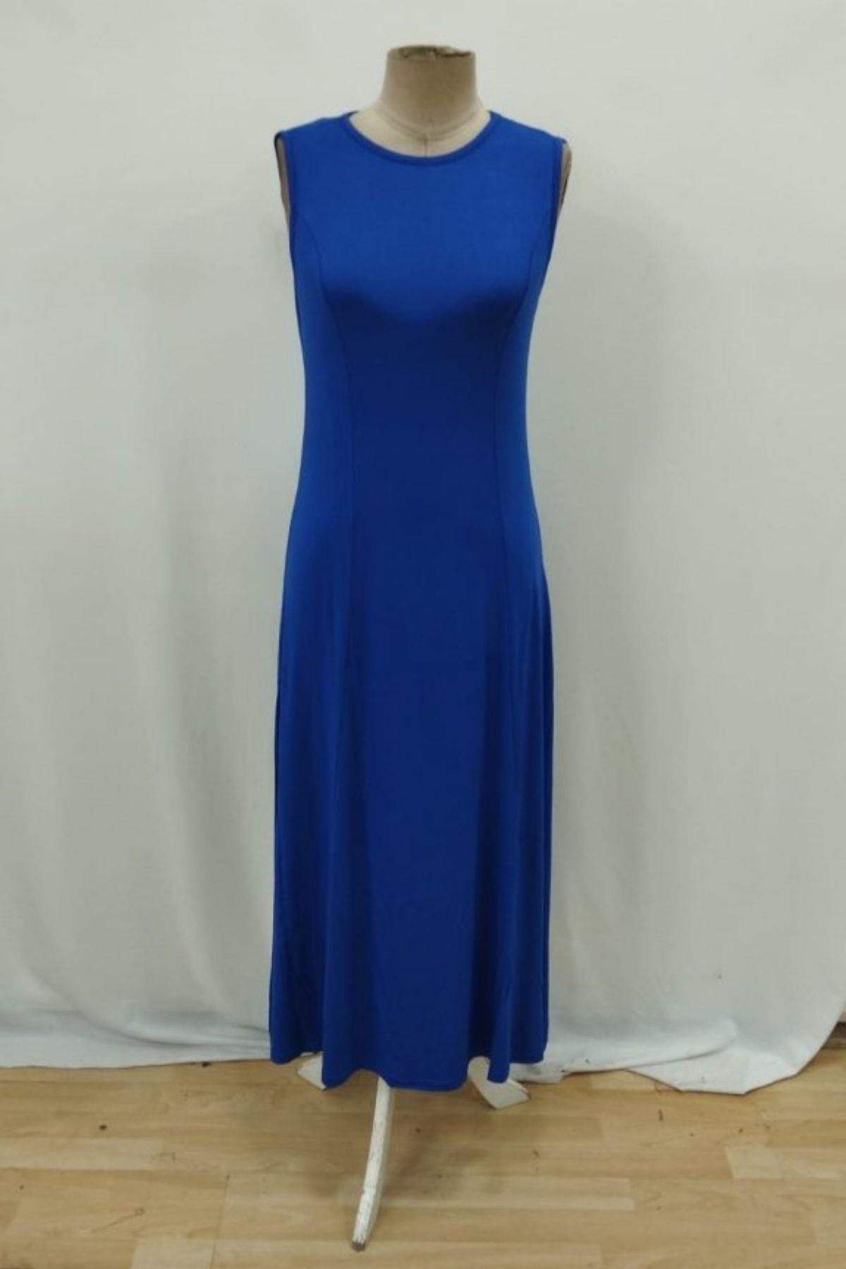 Bisiklet Yaka Kolsuz Uzun Viskon Elbise - Saks