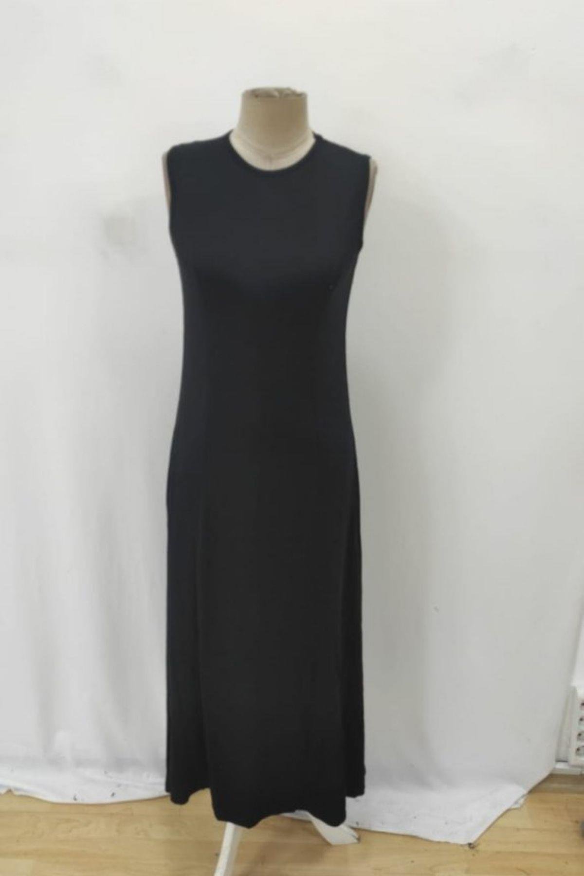 Bisiklet Yaka Kolsuz Uzun Viskon Elbise - Siyah