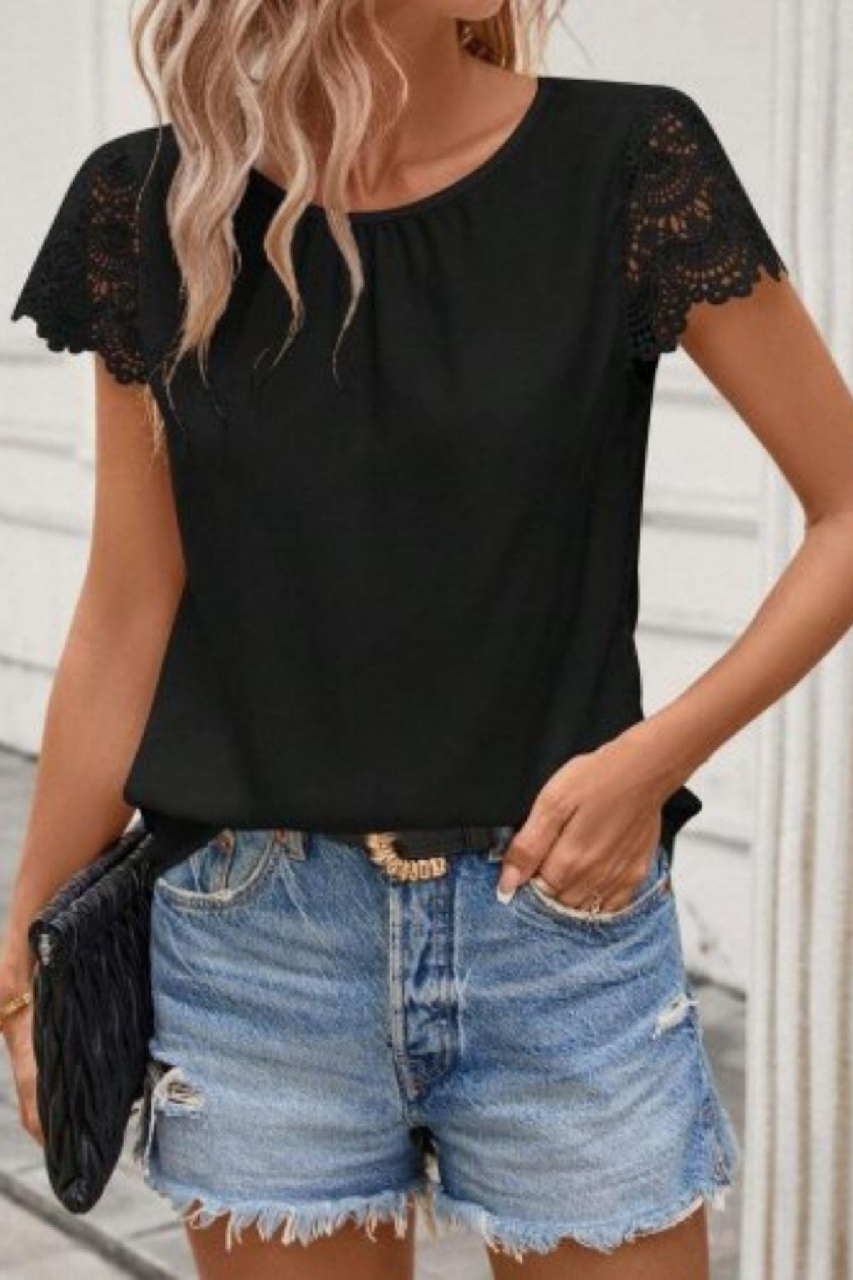 Dantel Kollu Bisiklet Yaka Sandy Bluz - Siyah (JS89012-SİYAH)