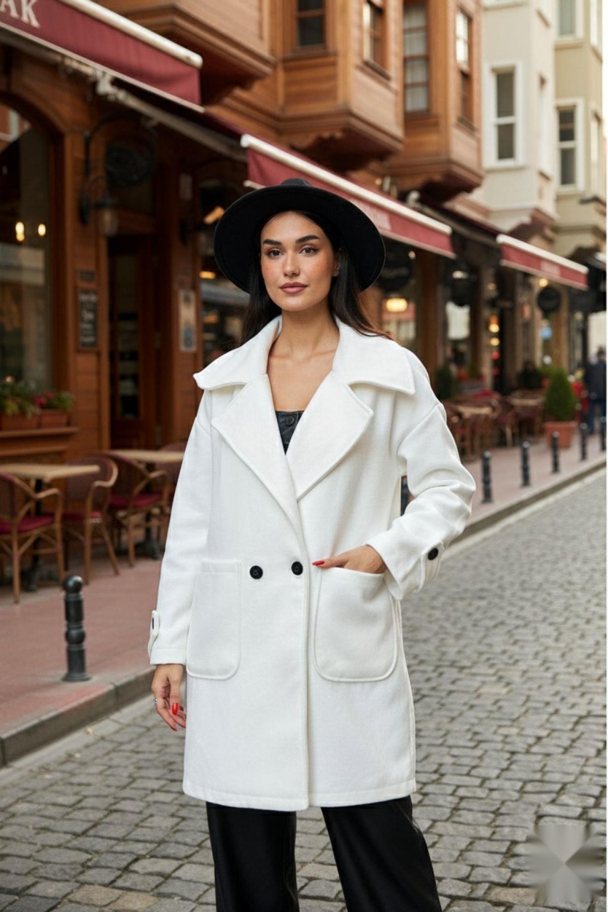 Geniş Cepli Düğmeli Oversize Kısa Kaban Ekru (RE1830-EKRU)