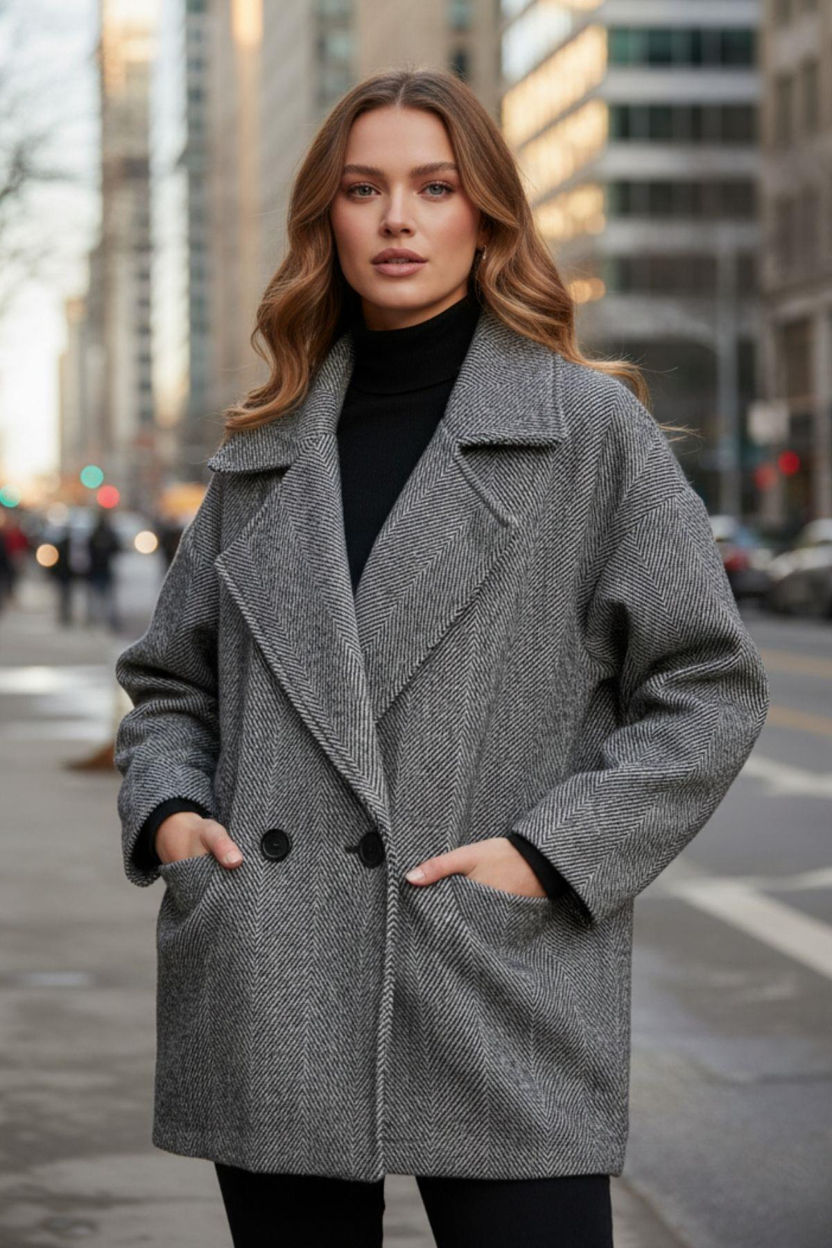 Kısa Kesim Balıksırtı Desenli Oversize Ceket/Kaban