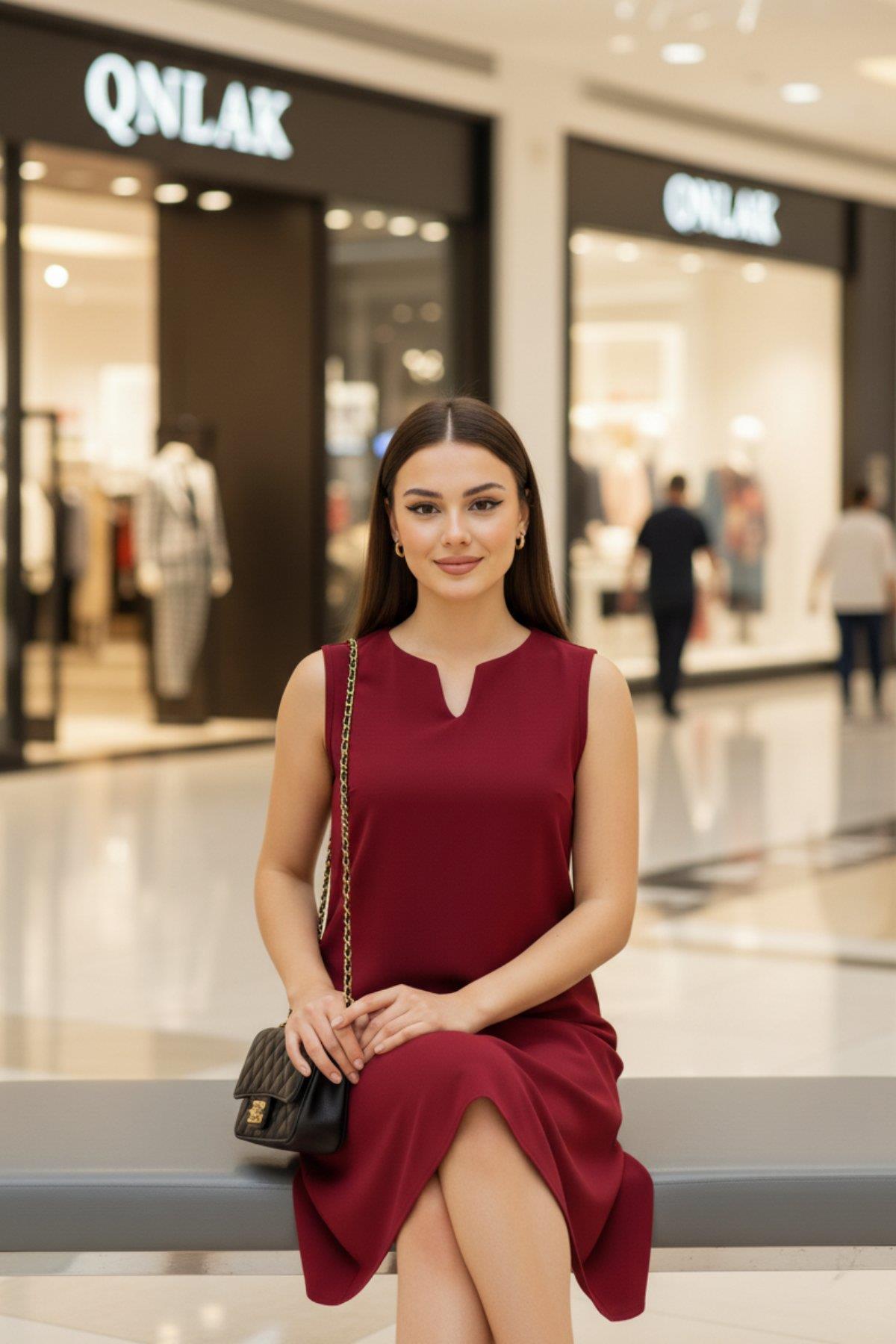 Zarif Silüet, Çabasız Şıklık: V Yaka Detaylı Kolsuz Elbise