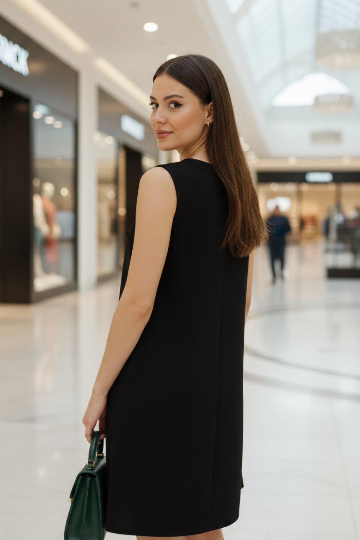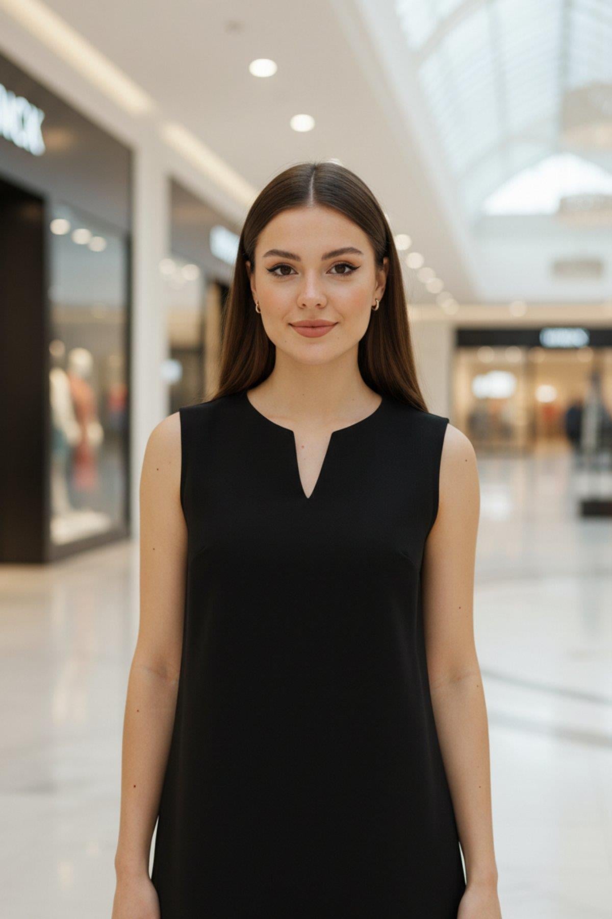 Minimalist çizgileri sofistike bir dokunuşla birleştiren bu elbise, her kadının gardırobunda olması gereken "kilit" parçalardan biri. Mossta.com’un modern tasarım anlayışını yansıtan bu model, yaka kısmındaki zarif V kesimi ve kolsuz tasarımıyla hem ofis şıklığında hem de özel davetlerde size eşlik ediyor.