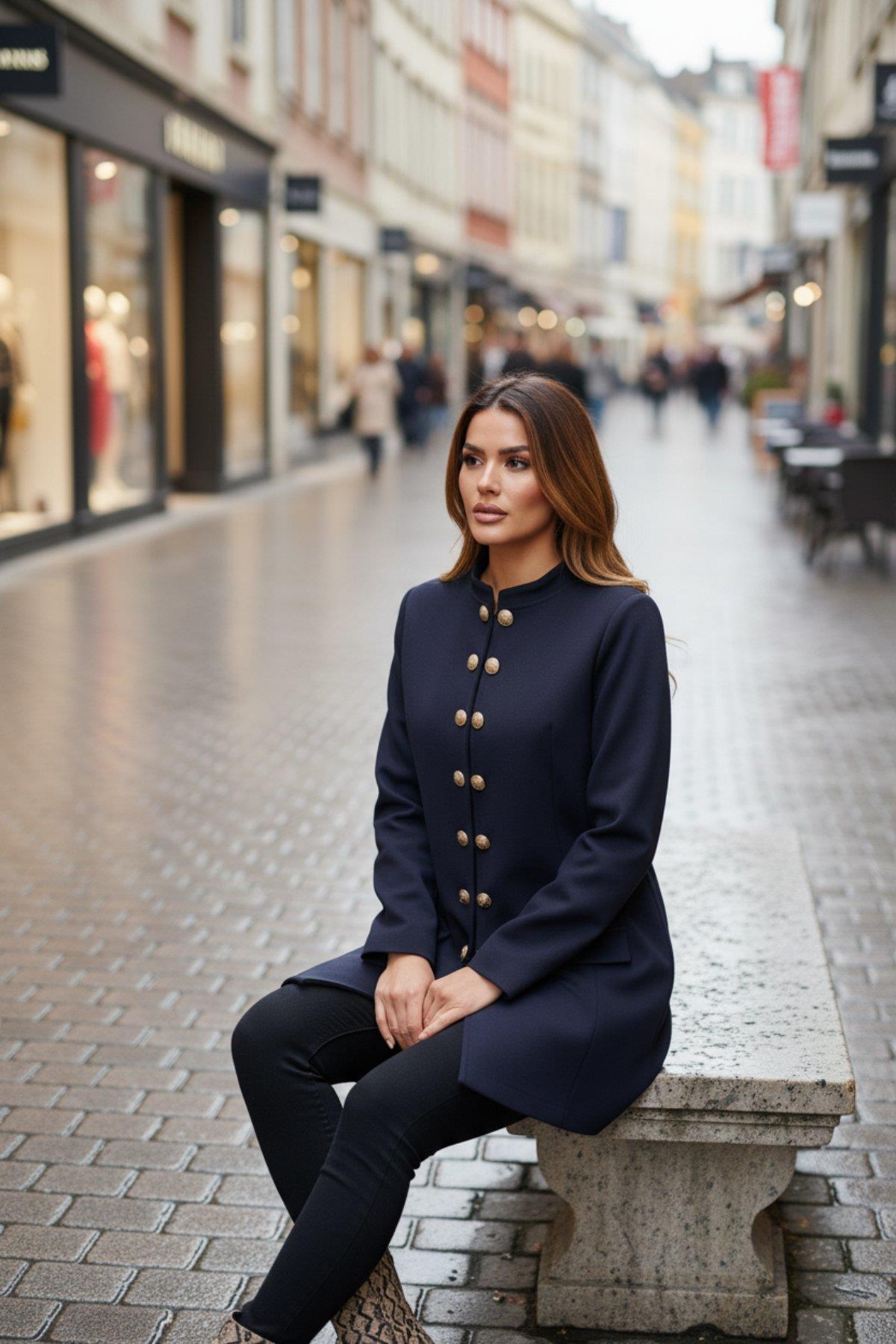 Askeri Esintili Elegans: Dik Yaka Düğmeli Ceket