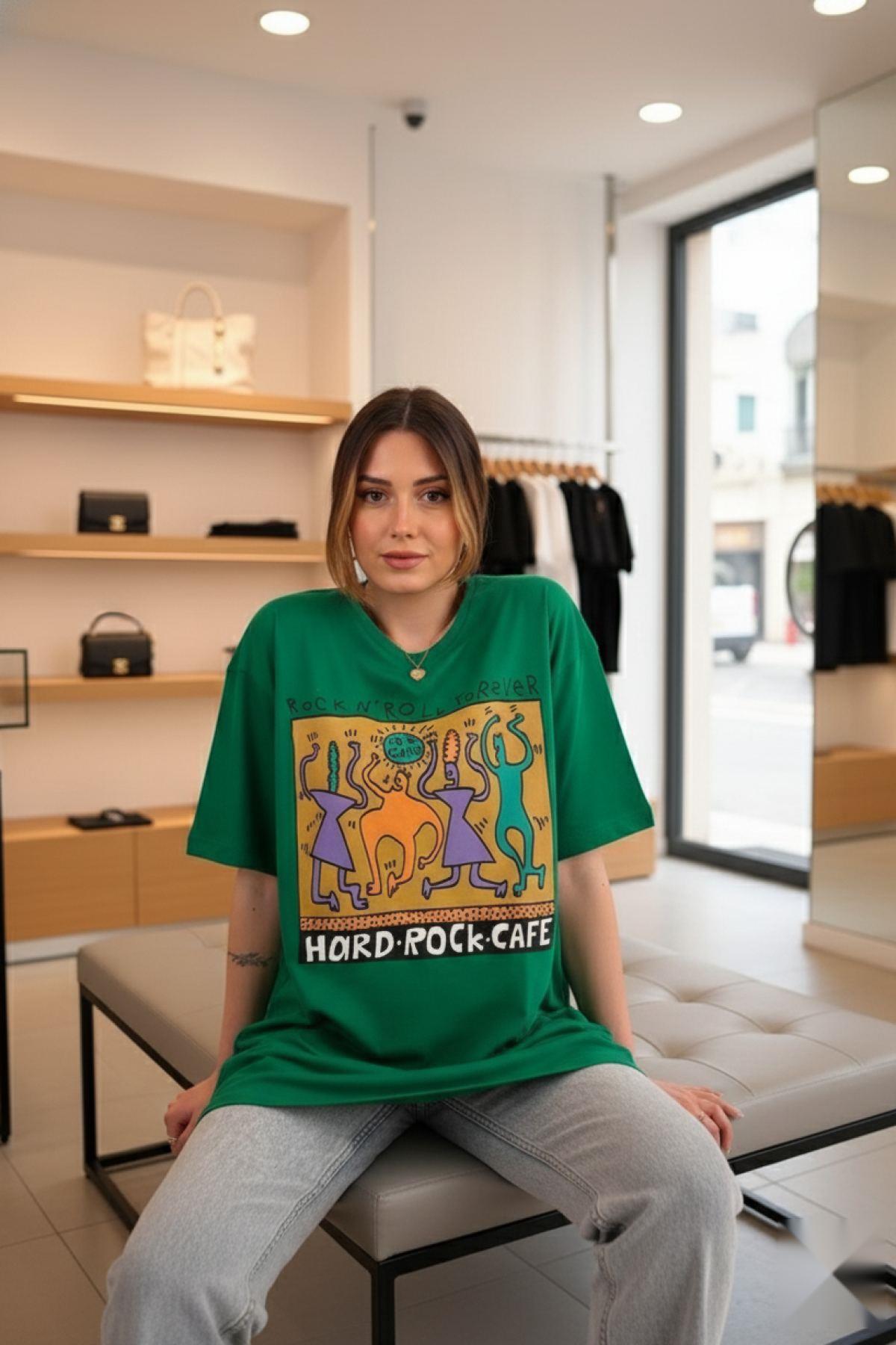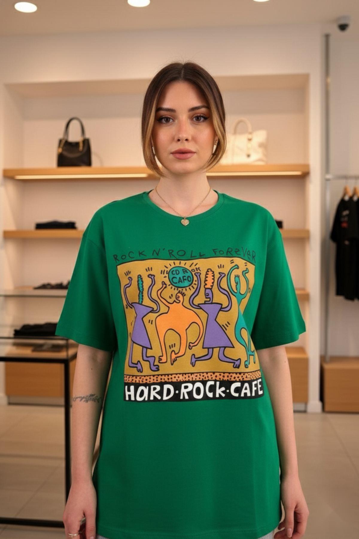 Hard Rock Baskılı Basic Kısa Kollu T-Shirt Yeşil (PNF2324-YEŞİL)