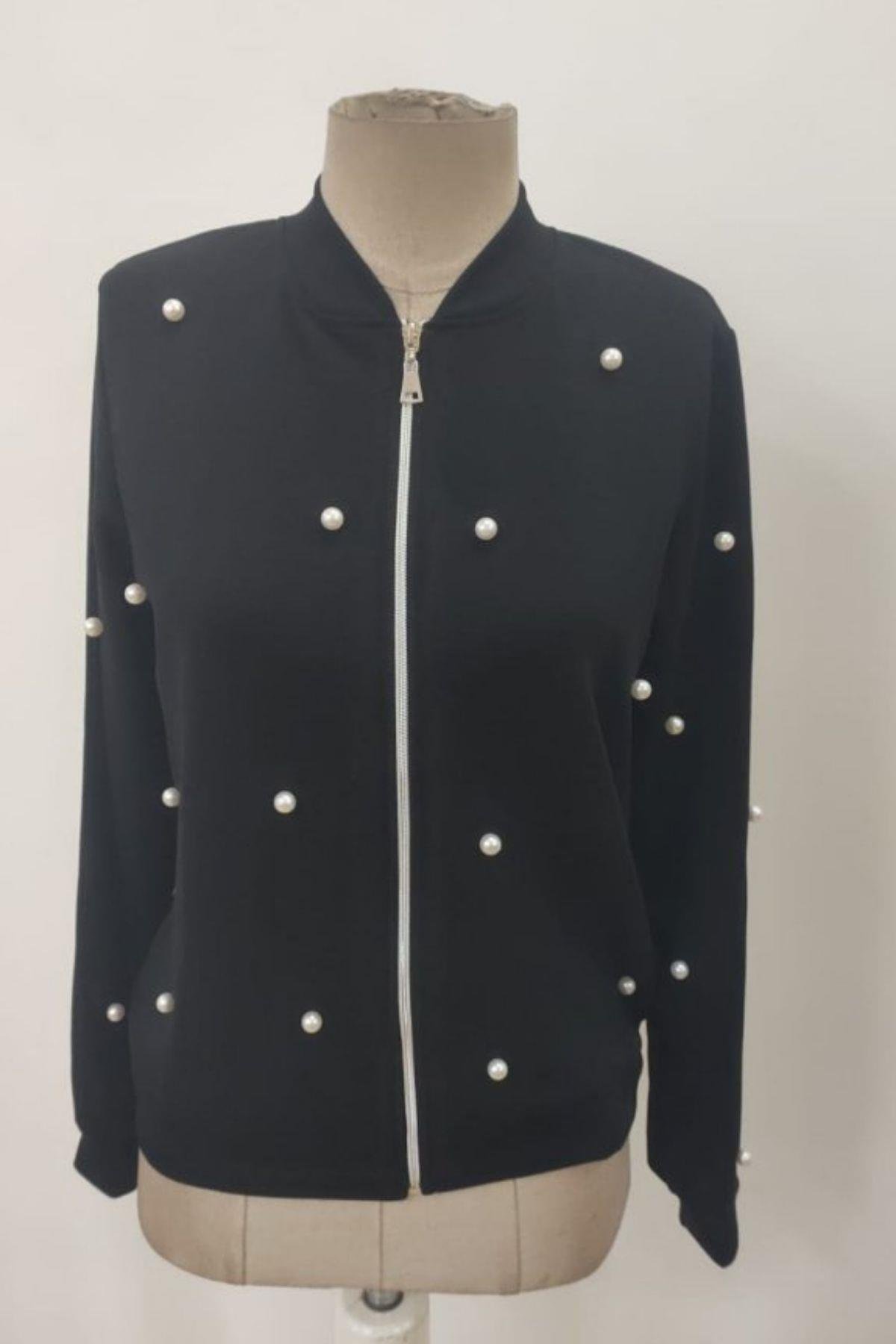 İnci Detaylı Fermuarlı Modal Ceket - Siyah (JS61767-SİYAH)