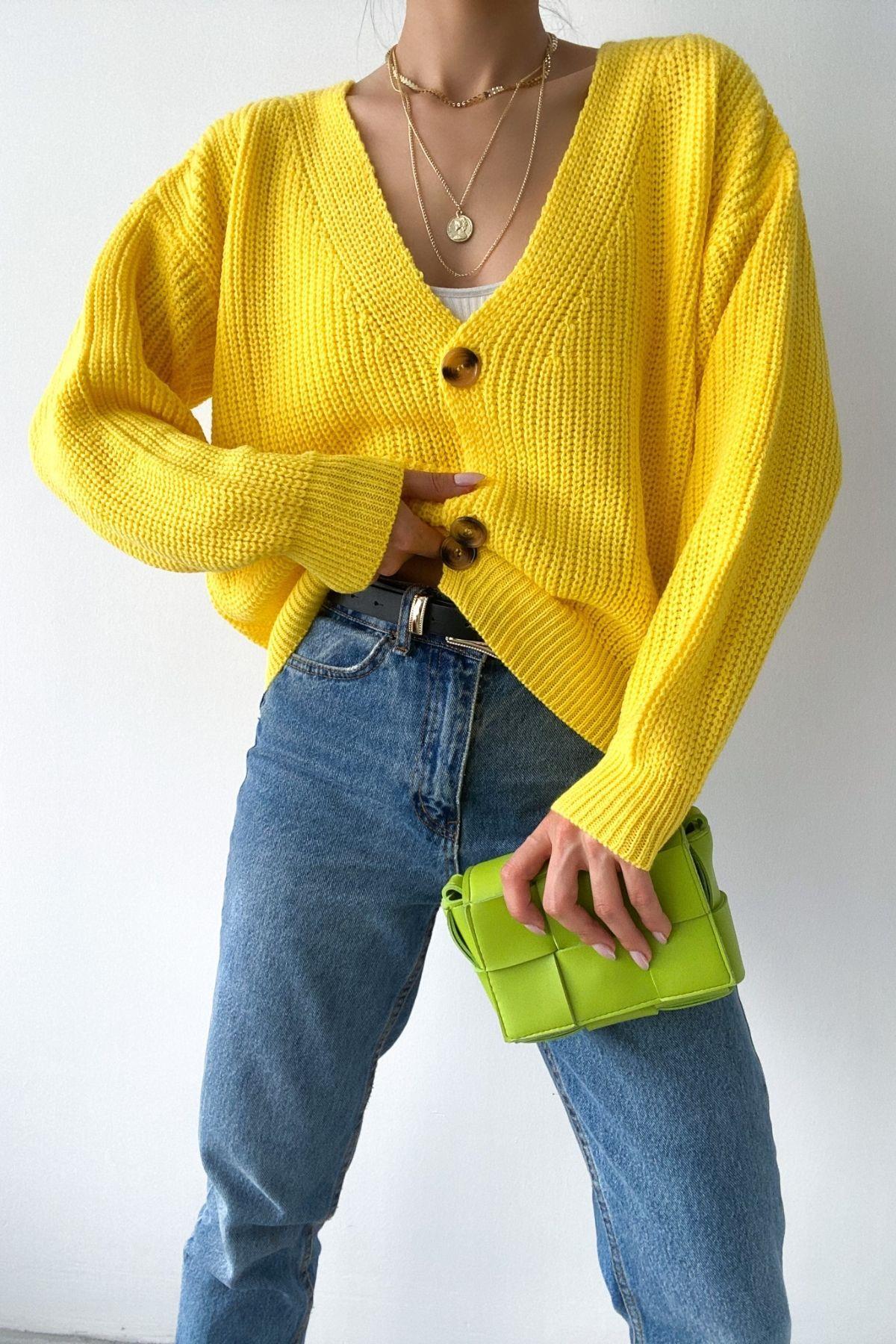 Isabel Düğmeli Trend Hırka Sarı (NS22110-SARI)