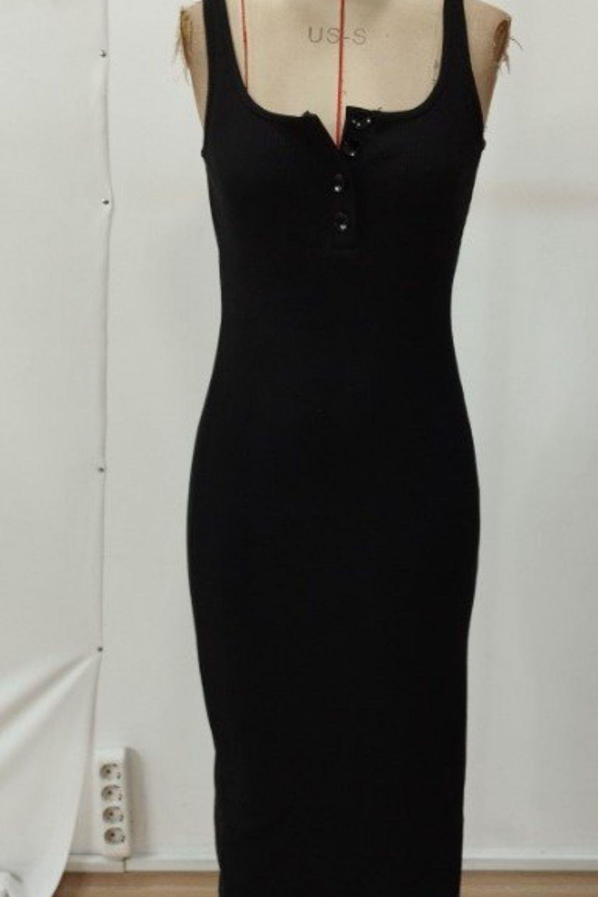 Kalın Askılı Düğme Detaylı Midi Kaşkorse Elbise - Siyah (JS61620-SİYAH)