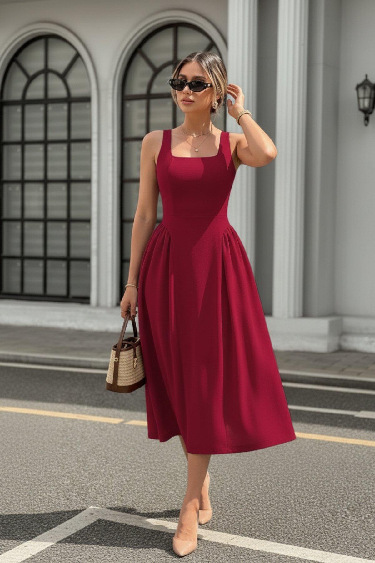 Zarafetin Modern Yorumu: Kare Yaka Piliseli Midi Boy Elbise