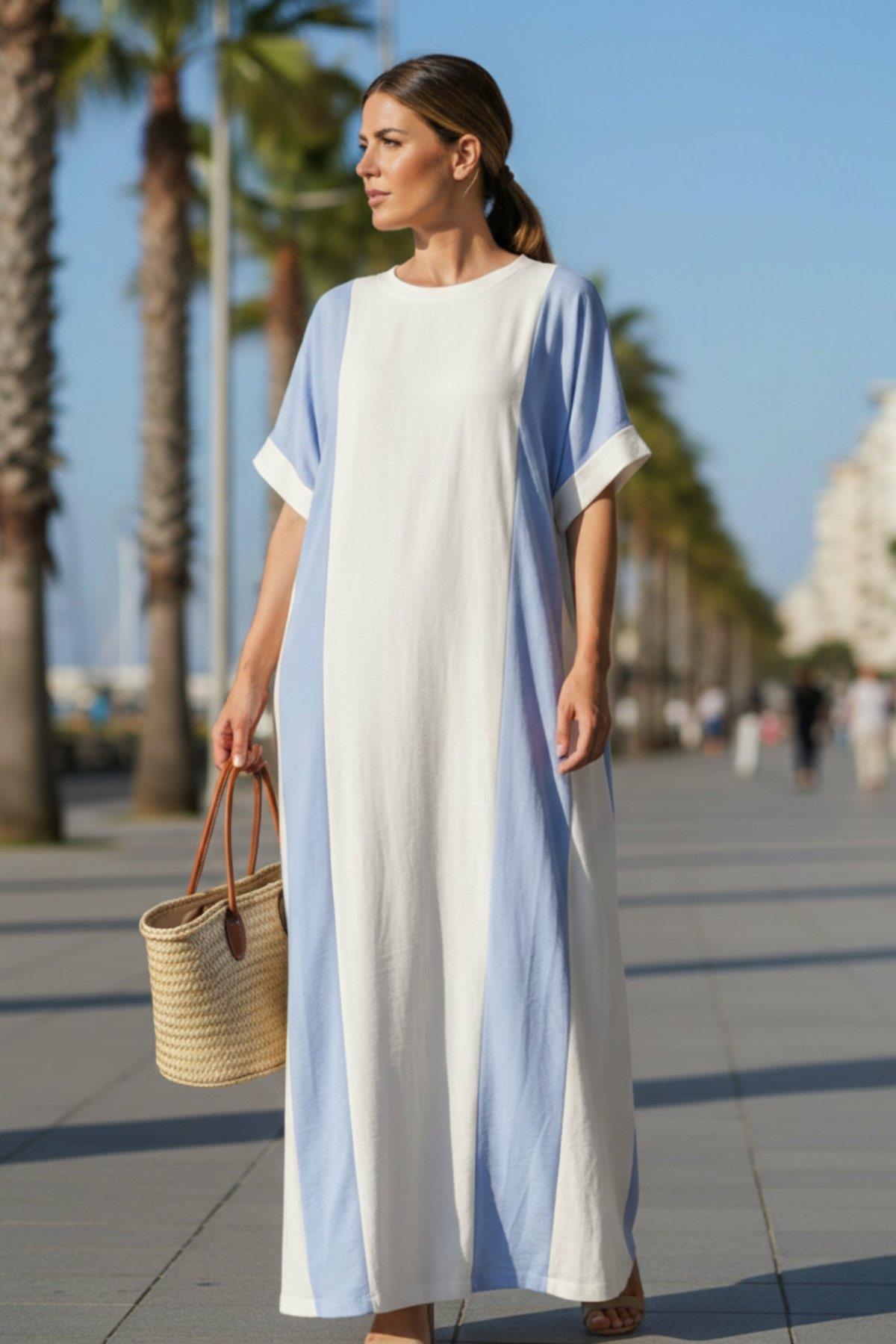 Yazın Eforsuz Şıklığı: Kontrast Blok Desenli Maksi Boy Elbise