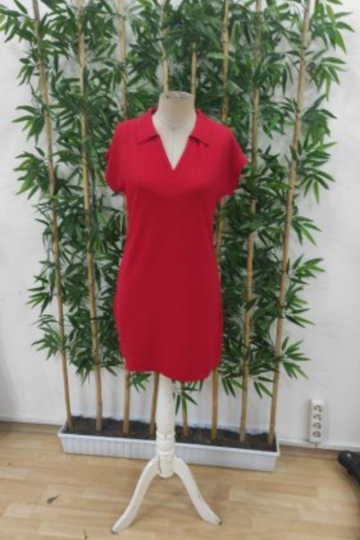 Kısa Kollu Polo Yaka Bürümcük Elbise - Kırmızı