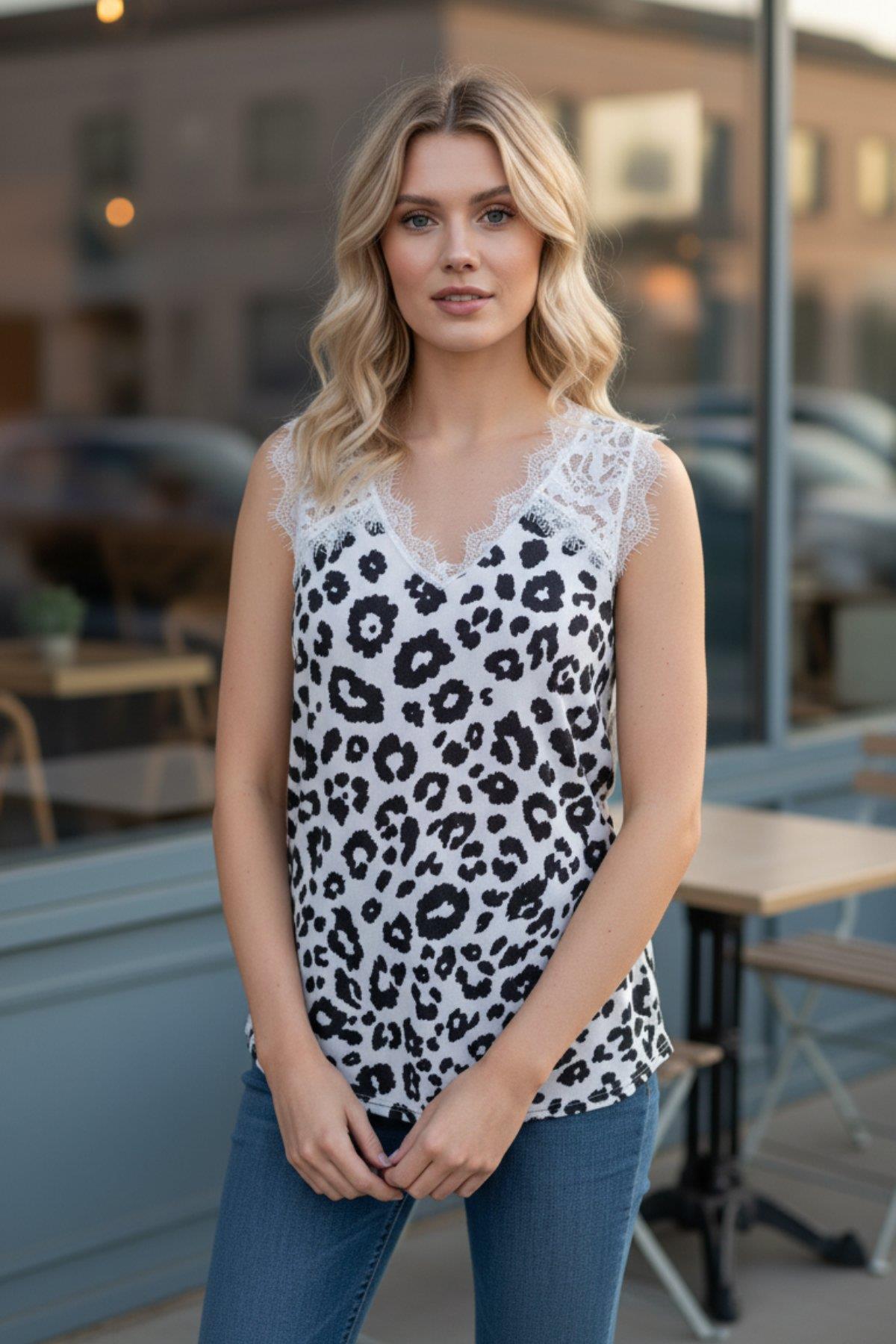 Gardırobunuza hem feminen hem de modern bir hava katmaya ne dersiniz? yeni sezon koleksiyonunda yer alan bu özel tasarım bluz, klasik leopar desenini romantik beyaz dantel detaylarıyla birleştiriyor.