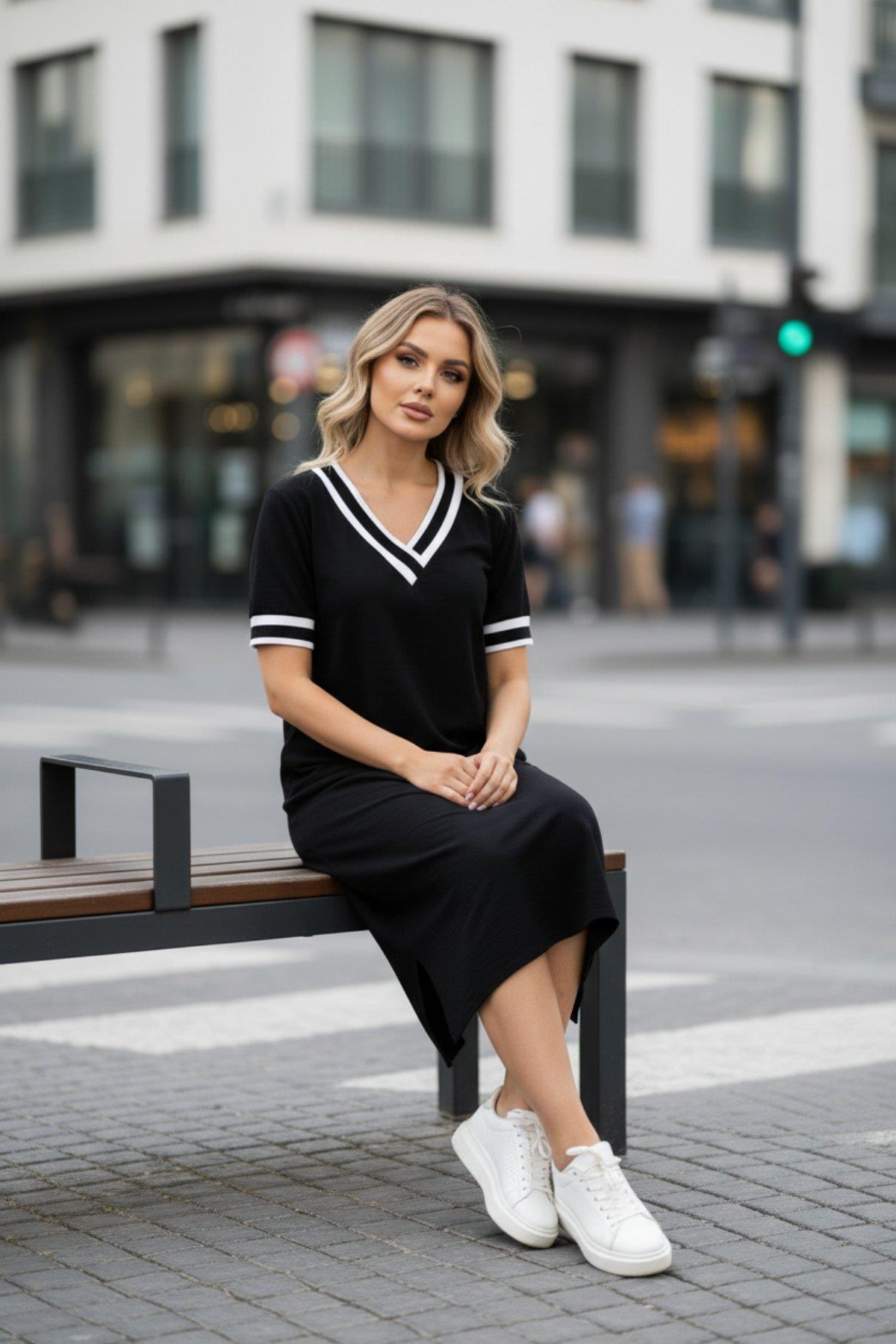 Kadın Kısa Kollu V Yaka Kol ve Yaka Ribana Detay Midi Boy Viskon Elbise, klasik siyah rengi ve zarif tasarımıyla hem günlük hem de özel günlerde şıklığı garantiler. Rahat viskon kumaşı ve şık detaylarıyla her ortamda fark yaratabilirsiniz. Mossta.com'dan alışveriş yaparak hızlı kargo, güvenilir ödeme seçenekleri ve geniş ürün yelpazesinin avantajlarından faydalanabilirsiniz.