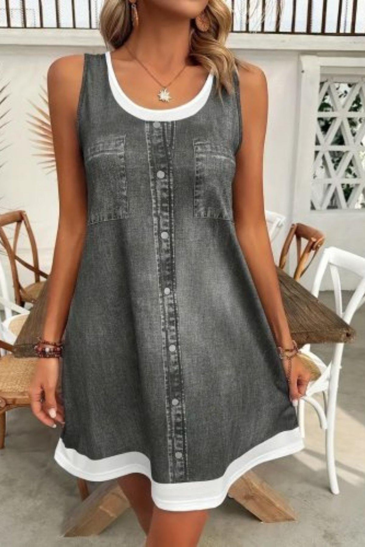 Bu rahat ve stil sahibi askılı mini elbise, denim esintili tasarımıyla günlük şıklığınıza farklı bir dokunuş katıyor. Yumuşak dokulu kumaşı, gerçek denimin ağırlığı olmadan denim görünümü sunarak gün boyu konfor sağlar. Ön kısmındaki düğme detayları ve göğüs cepleri, klasik denim estetiğini yansıtırken, etek ucundaki kontrast renkli şerit detayı modern ve hareketli bir hava katar. Salaş kesimi sayesinde sıcak yaz günlerinde ferahlık sunan bu elbise, kolayca giyilip çıkarılabilir yapısıyla pratik bir kullanım sunar. İster şehirde, ister tatilde veya arkadaş buluşmalarında, spor ayakkabılarla veya sandaletlerle kombinleyerek zahmetsizce cool bir stil yaratabilirsiniz.