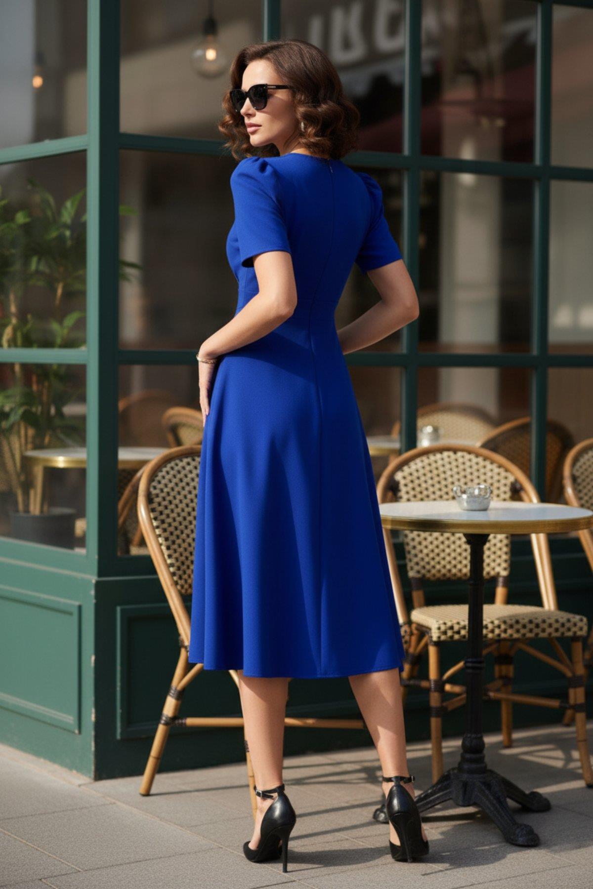 • Kol Detayı: Hafif kabarık (puff) kısa kol tasarımı, omuzlara asalet katar ve modele romantik bir hava kazandırır.