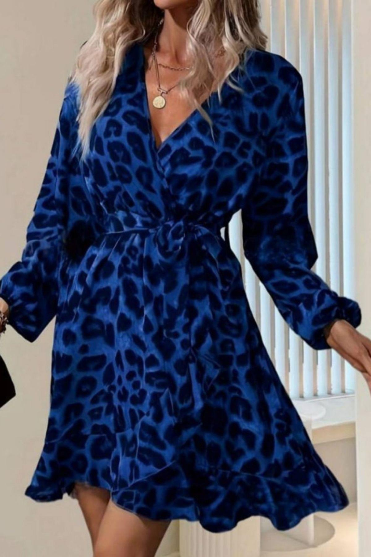 Kruvaze Yaka Bağlamalı Mini Modal Elbise Yeşil Kruvaze Yaka Bağlamalı Mini Modal Elbise Leopar Kruvaze Yaka Bağlamalı Mini Modal Elbise Saks