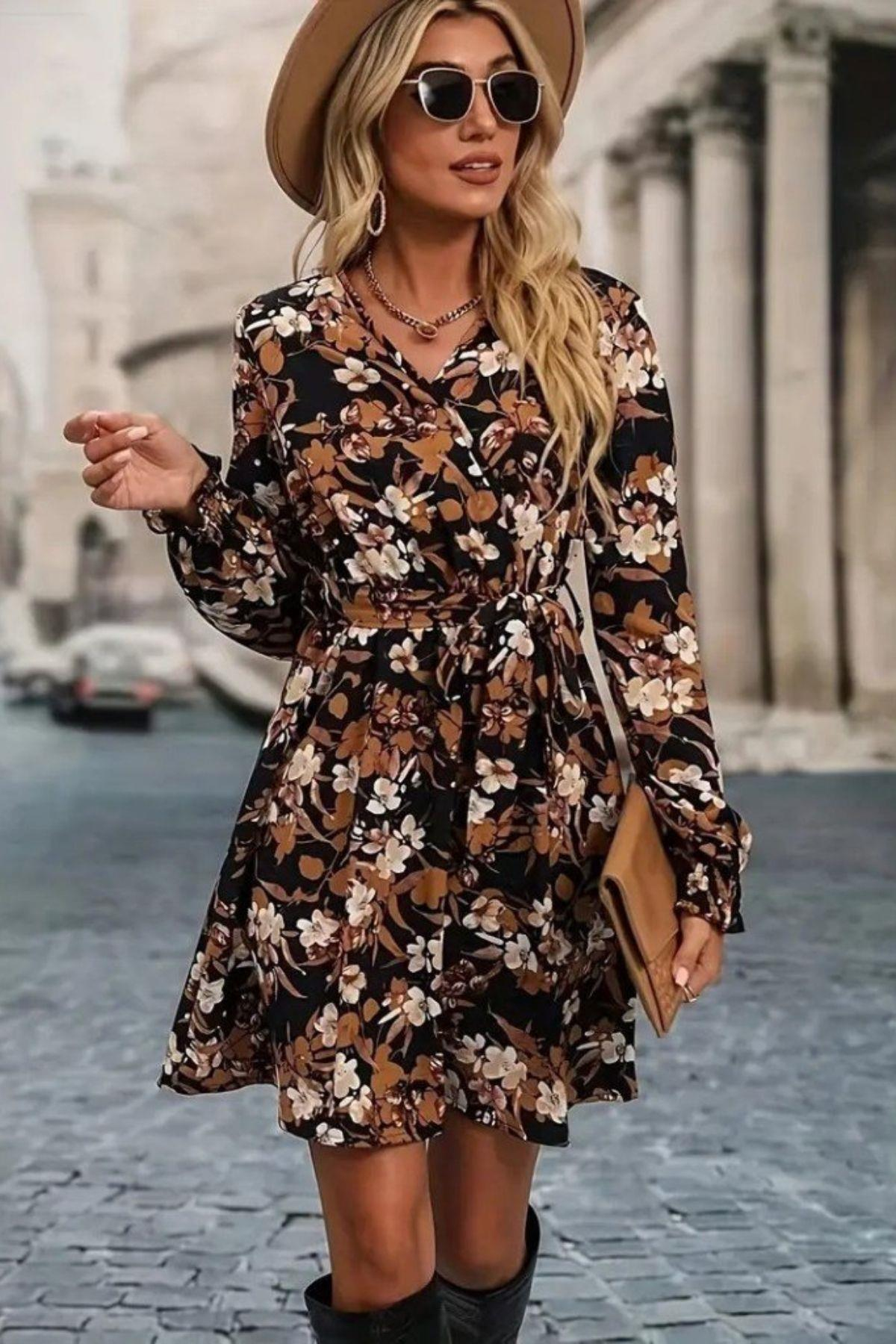 Bu çiçek desenli elbise ile gardırobunuza bahar esintisi katın! V yaka kesimi ve kendinden bağlamalı beli sayesinde zarif bir silüet oluştururken, uzun kolları her mevsime uyum sağlar. Diz üstü boyu ve hafif dökümlü eteğiyle hem şık hem de rahat bir kullanım sunar. Günlük şıklığınızdan özel davetlere kadar birçok farklı ortamda rahatlıkla tercih edebilirsiniz. Botlar veya sandaletlerle, şapka veya zarif takılarla kombinleyerek tarzınızı yansıtın.