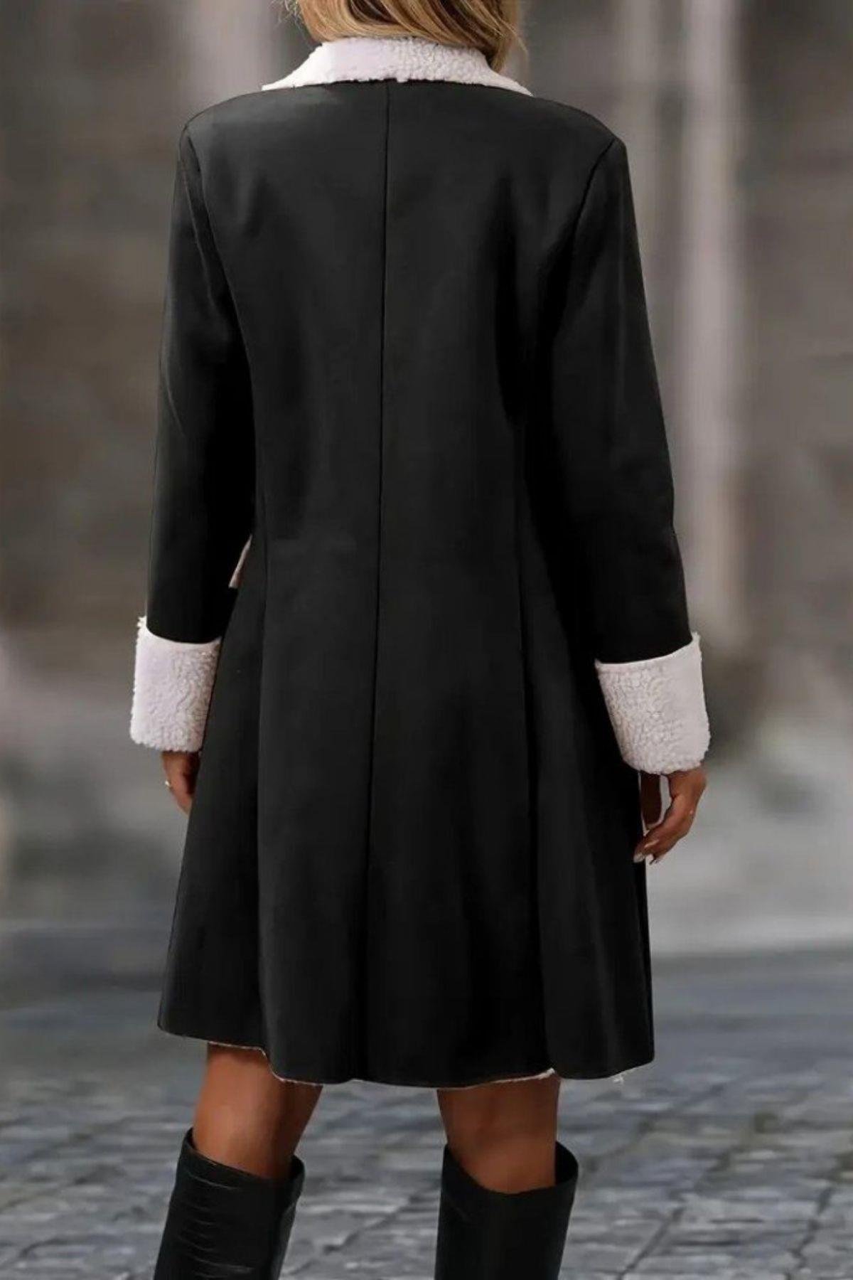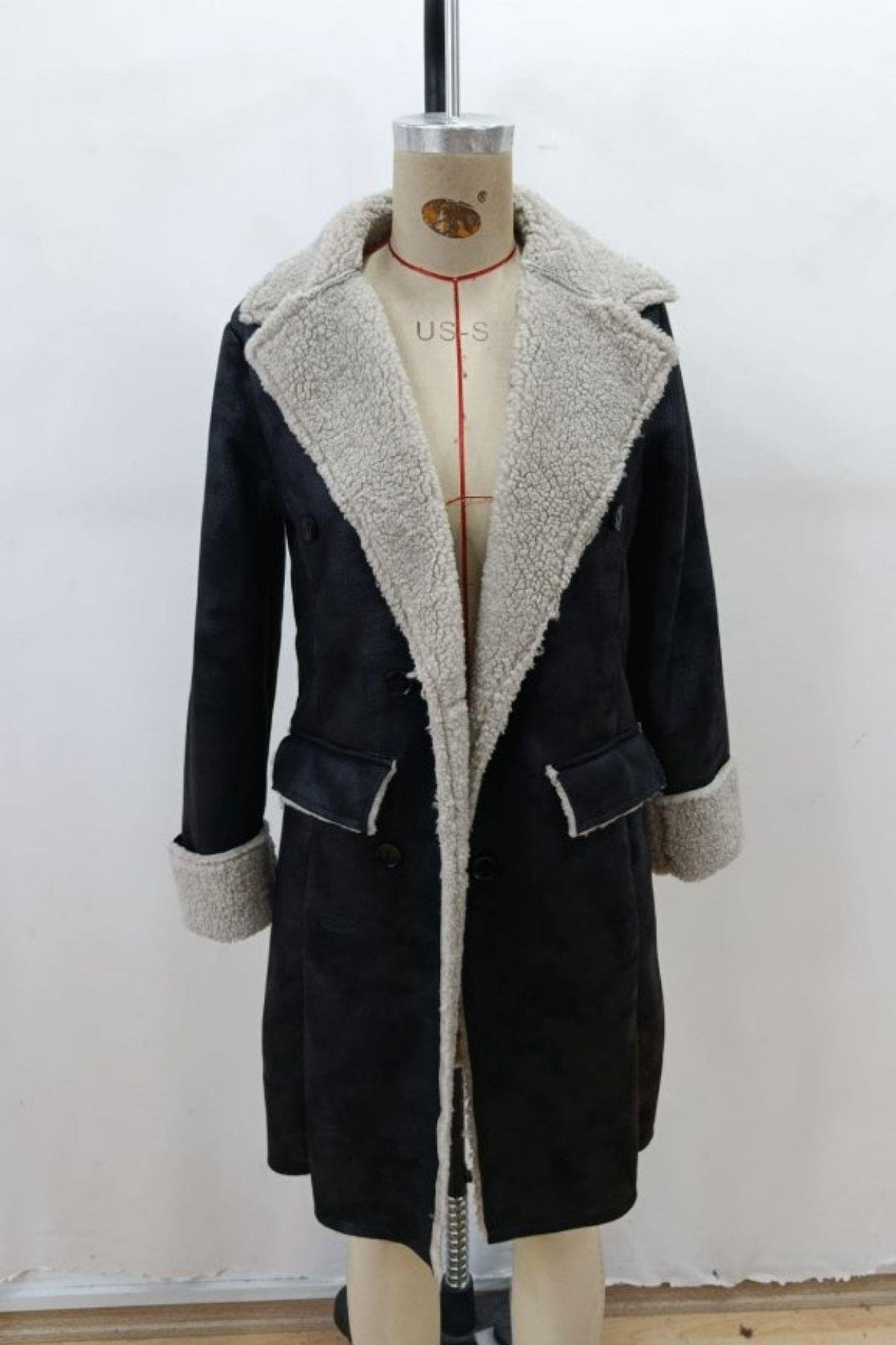 Kürk Detaylı Düğmeli Süet Kaban - Siyah