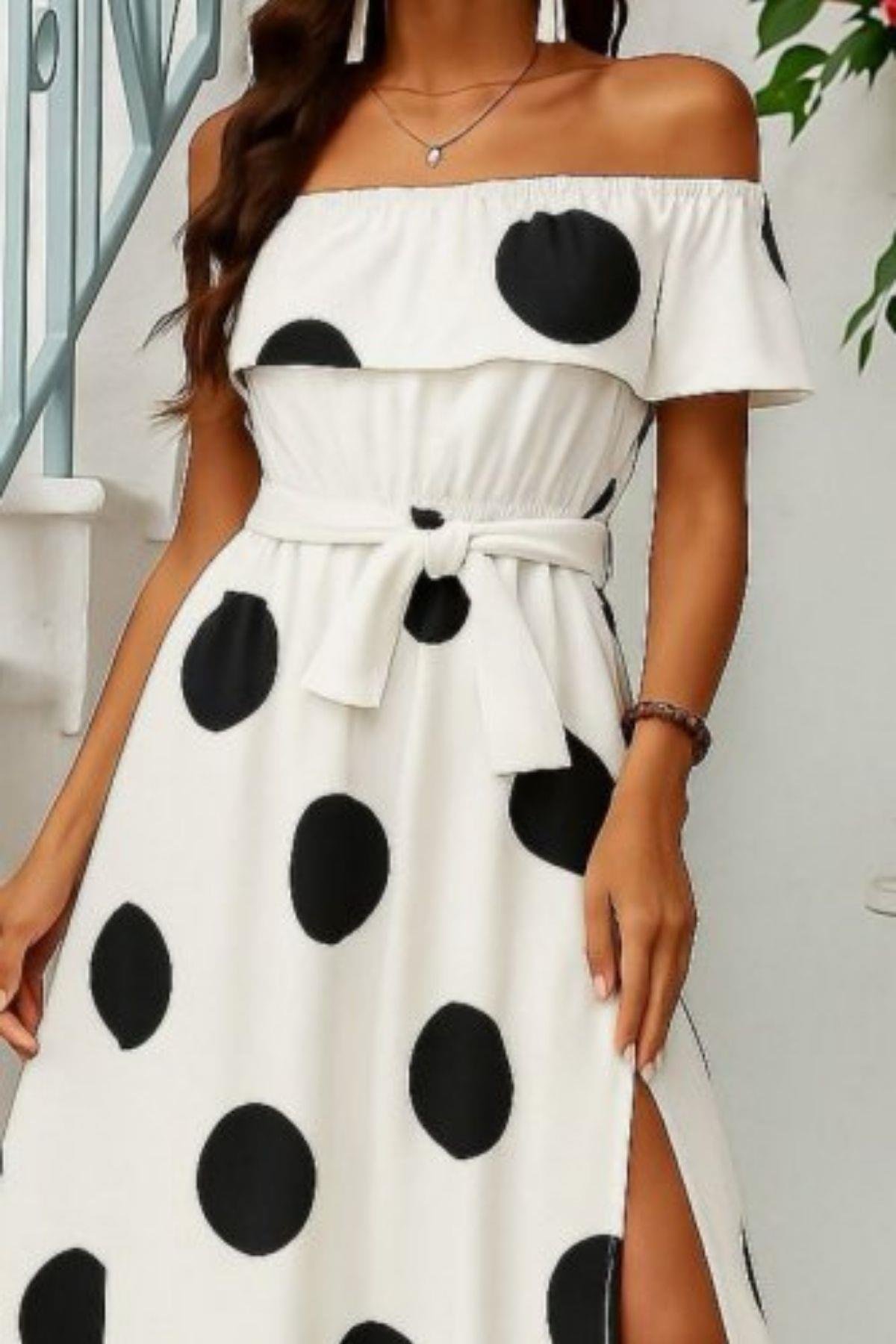 Yaz stilinize neşe ve zarafet katacak bu omuz dekolteli, puantiyeli maksi elbise ile tanışın! Trendlerin vazgeçilmezi puantiye deseni, bu elbiseye zamansız bir şıklık katarken, omuzları açıkta bırakan tasarımı feminen ve çekici bir görünüm sunar. Beli bağlama detayı sayesinde siluetinizi vurgulayabilir, yan yırtmacı ise her adımınıza hareket ve zarafet katar. Plajdan şehir gezmelerine, yaz partilerinden akşam yemeklerine kadar geniş bir kullanım alanı sunan bu elbise, nefes alan hafif kumaşıyla sıcak günlerde bile maksimum konfor sağlar. Sandaletler, hasır çantalar ve minimalist takılarla tamamlayarak kusursuz bir yaz stili yaratın!