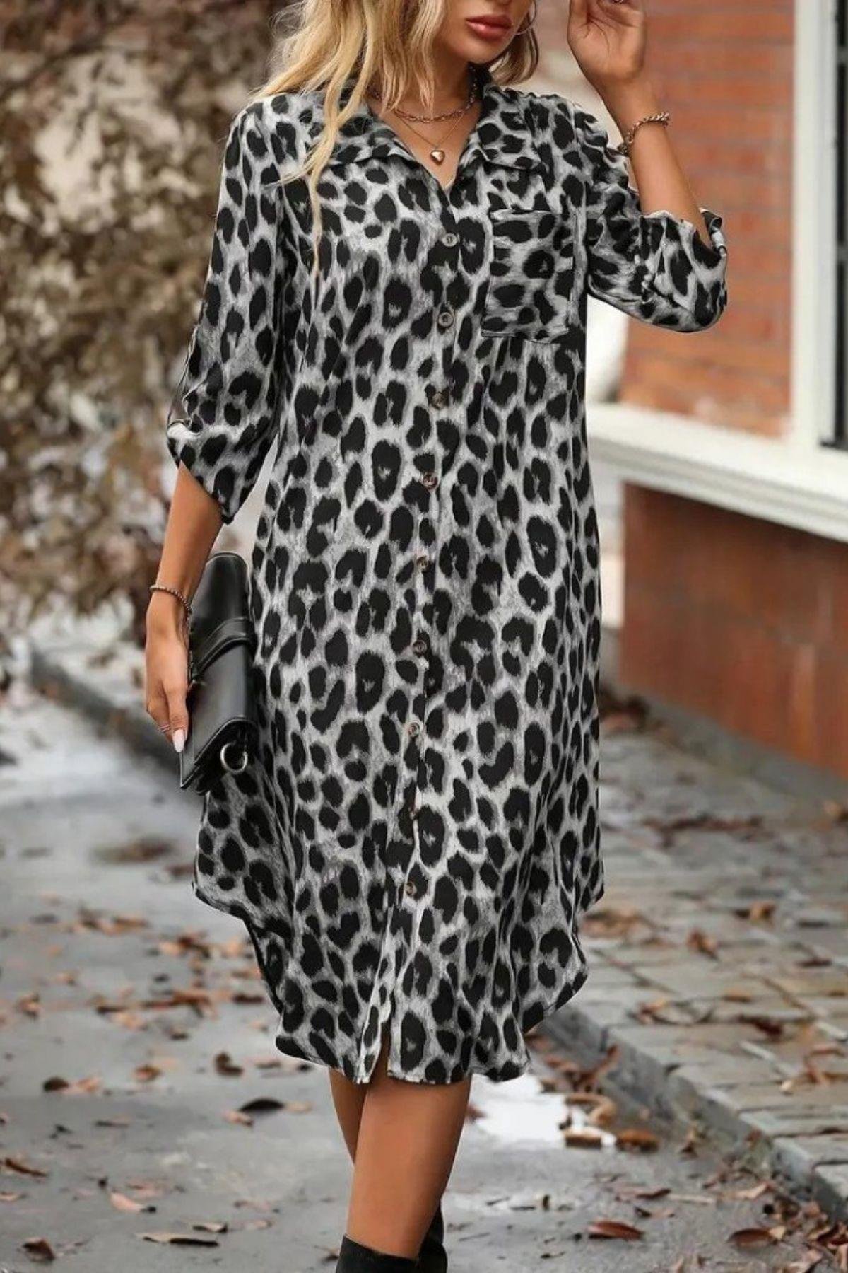 Bu şık ve modern gömlek elbise ile stilinize asi bir dokunuş katın. Zamansız leopar deseni ve midi boy tasarımı, hem günlük hem de şık kombinleriniz için ideal bir seçenek sunar. Ön düğmeli yapısı ve yan yırtmaç detayı, rahat bir kullanım sağlarken hareketli ve dinamik bir görünüm yaratır. Cep ve katlanabilir kol detayları, elbiseye fonksiyonellik katarken şıklığını pekiştirir. İster spor ayakkabılarla ister topuklu çizmelerle tamamlayarak her mevsimde kullanabilirsiniz.