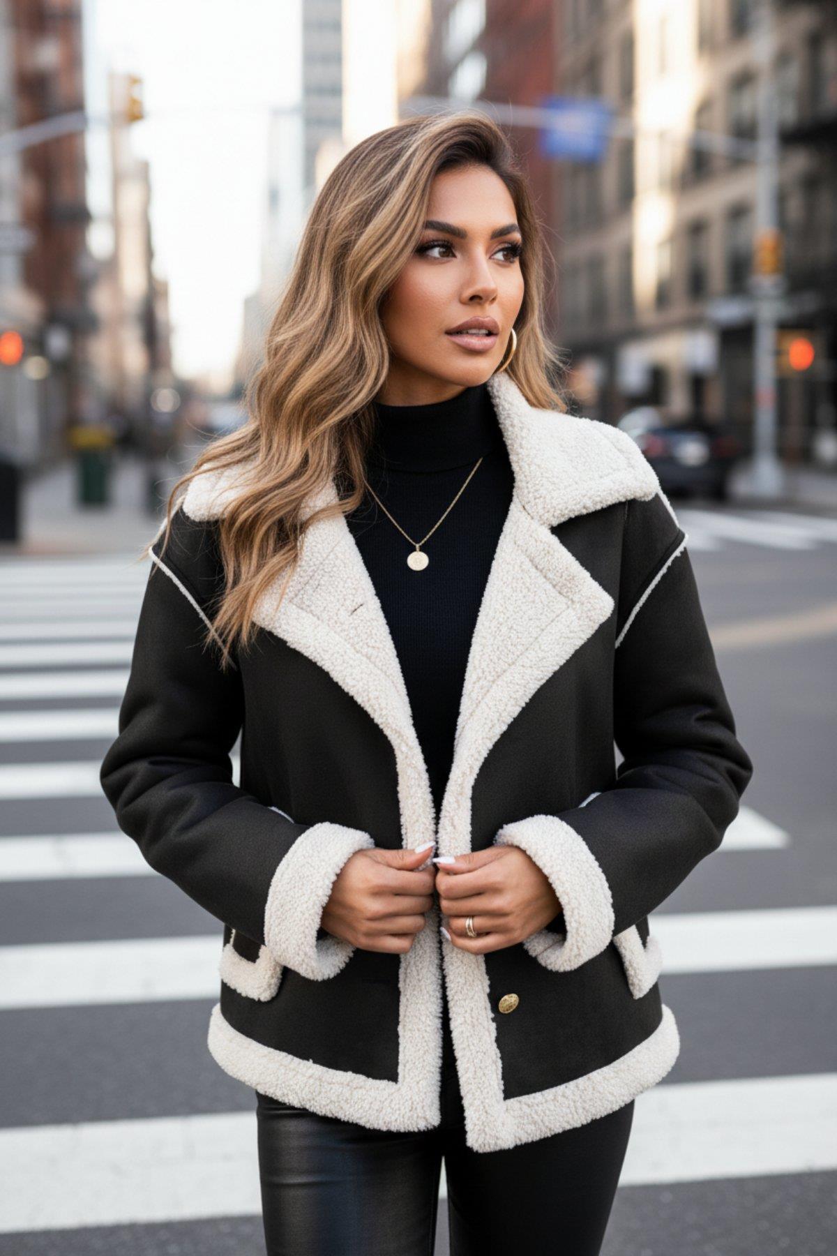 Geniş kürklü yakası ve manşet detaylarıyla zengin bir görünüm sunan bu ceket, soğuk havalarda gardırobunuzun en iddialı parçası olacak.