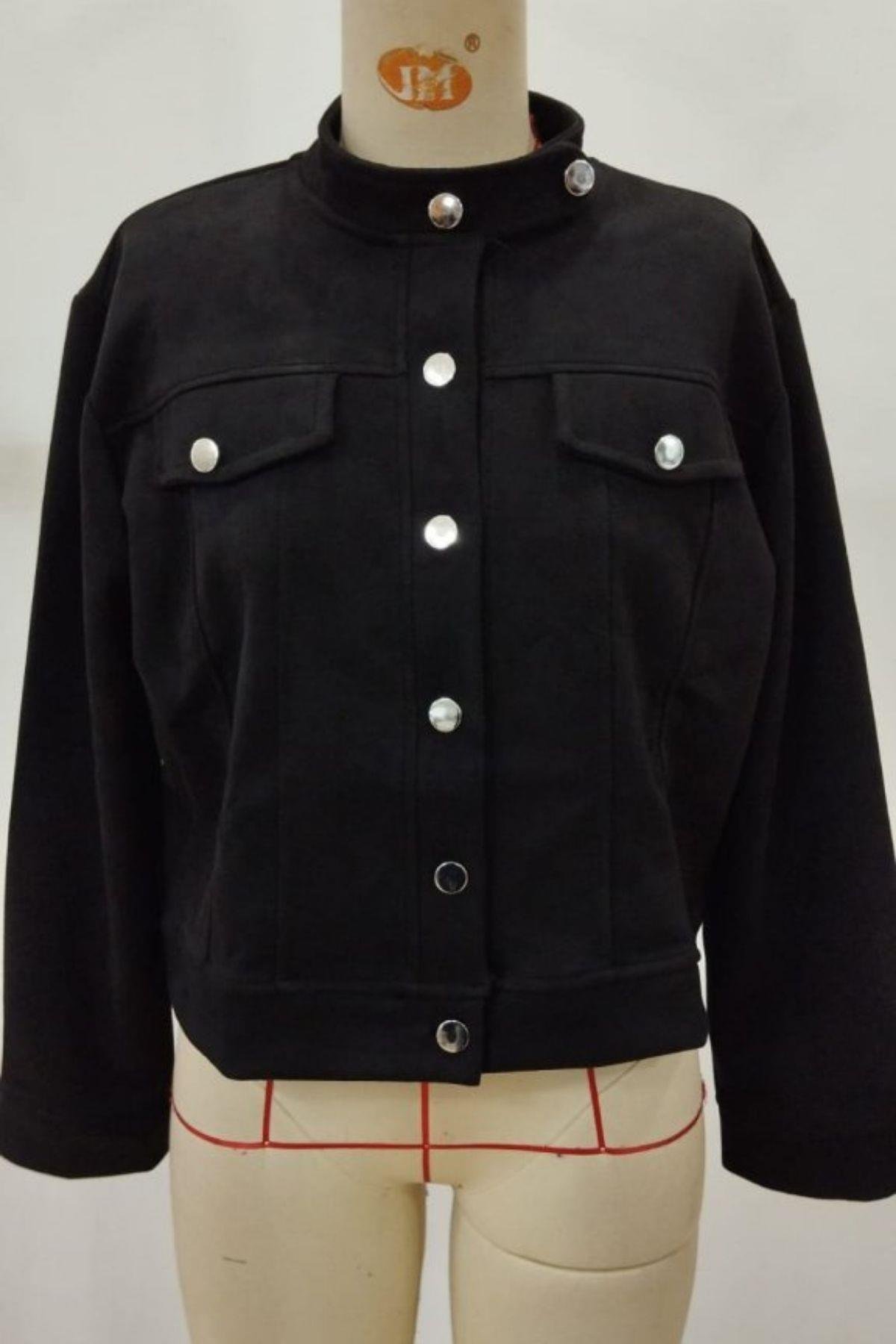Önden Düğmeli Kısa Süet Ceket - Siyah (JS46129-SİYAH)