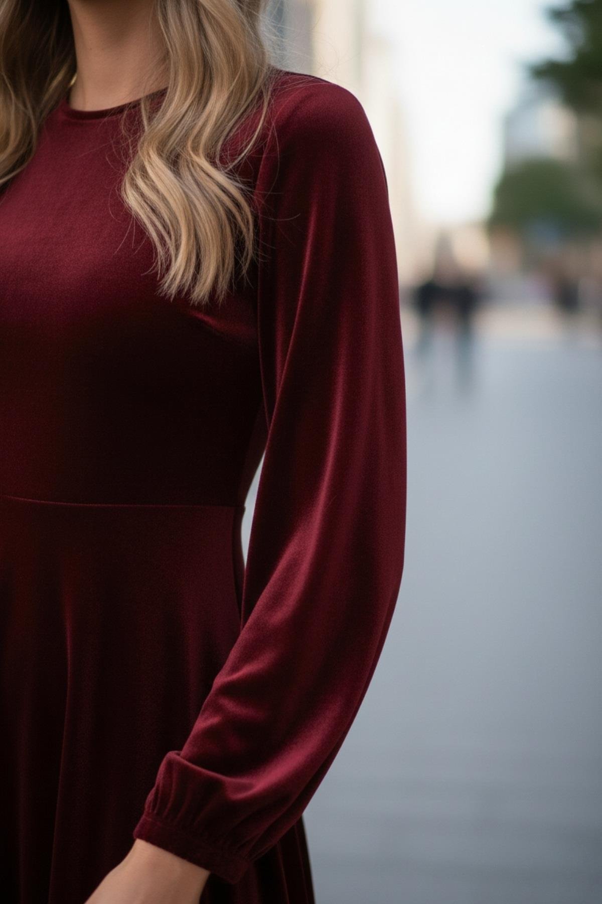 Özel gecelerin, davetlerin ve kokteyl partilerinin yıldızı olmaya hazır olun. Bu uzun kollu kadife midi elbise, asil duruşu ve yumuşacık dokusuyla lüks bir deneyim sunar. Kadifenin derin ve zengin parlaklığı, ışık altında göz kamaştıran bir şıklık yaratır.