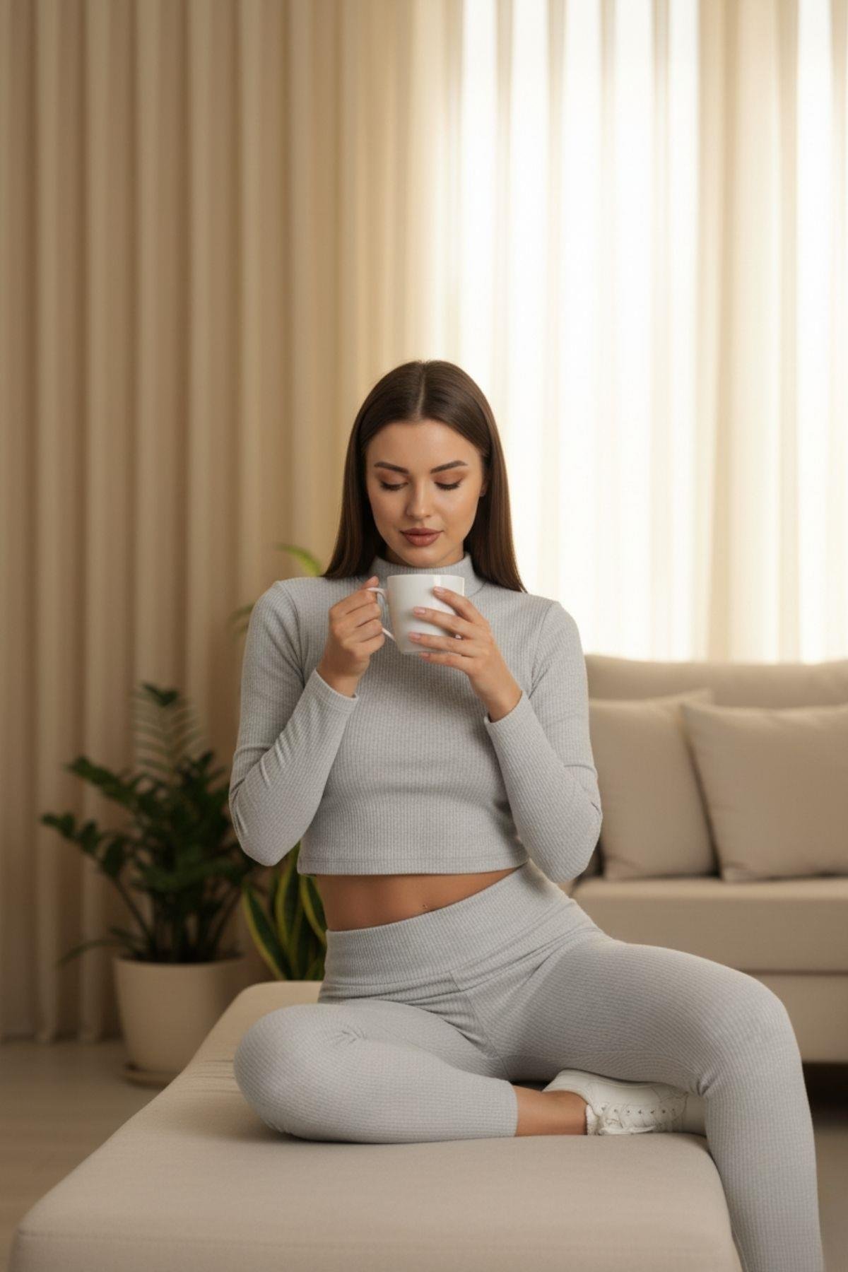 Şardonlu Fitilli İkili Taytlı Takım Gri