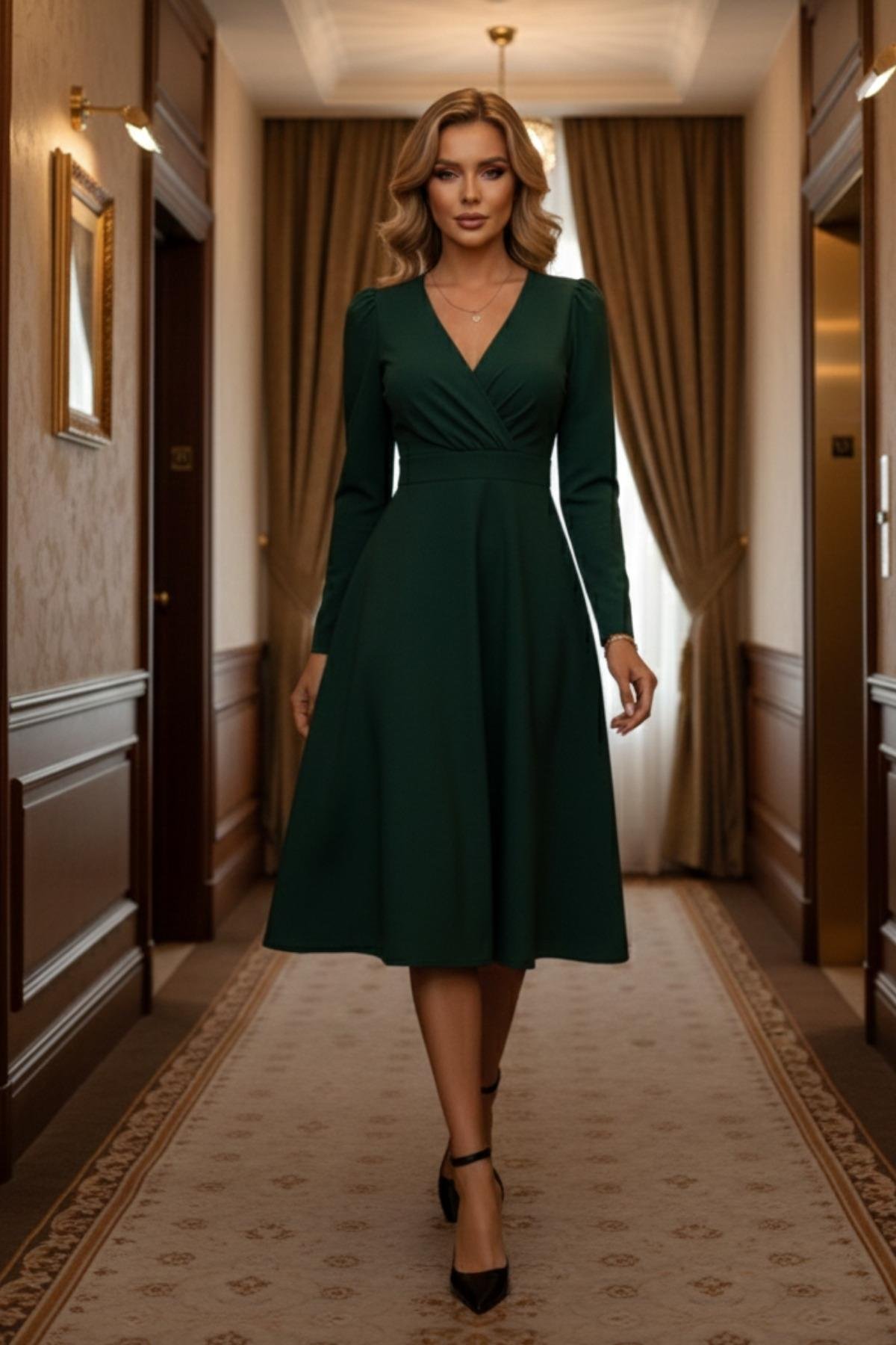 Sessiz Ama Güçlü – Yeşil Midi Davet Elbisesi