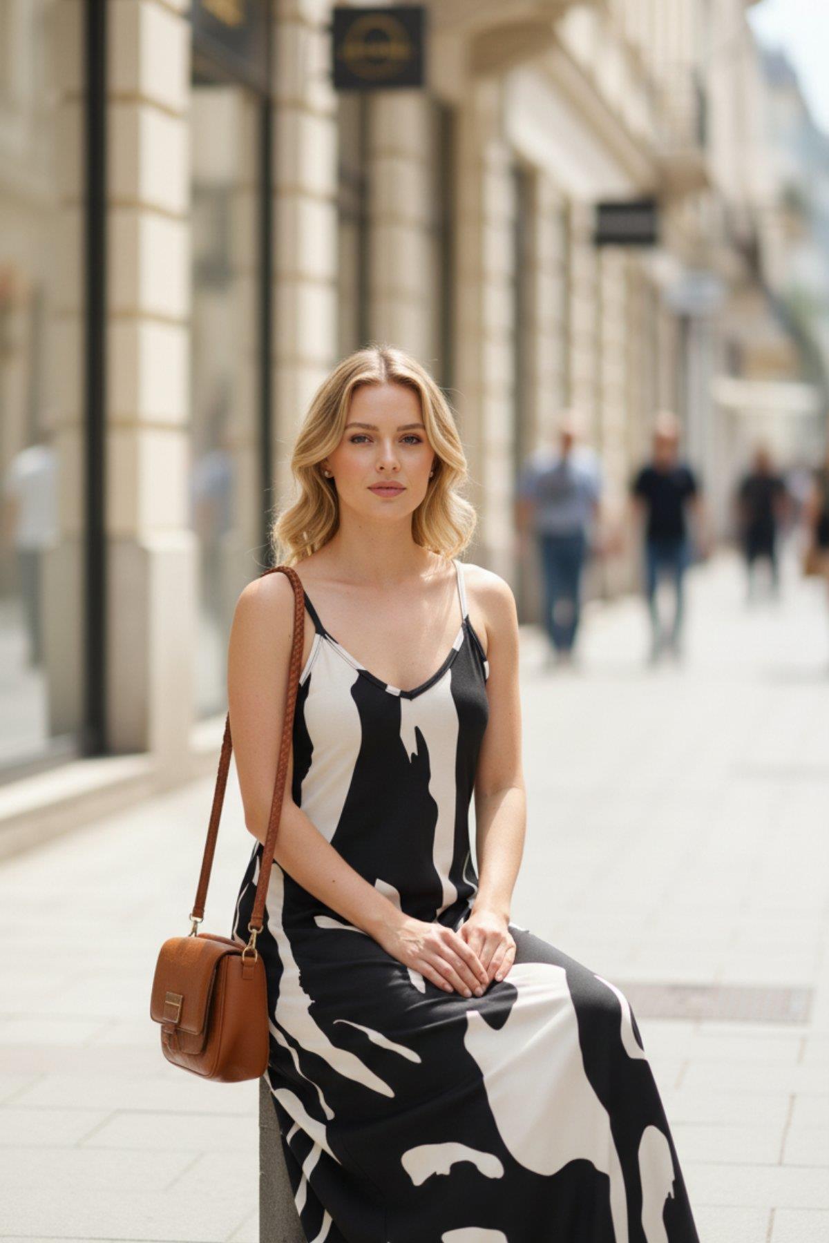 • Kombin Önerisi: İster görseldeki gibi taba rengi bir omuz çantası ve sandaletlerle günlük şıklığı yakalayın, ister topuklu ayakkabı ve gold takılarla akşam davetlerine uyarlayın.