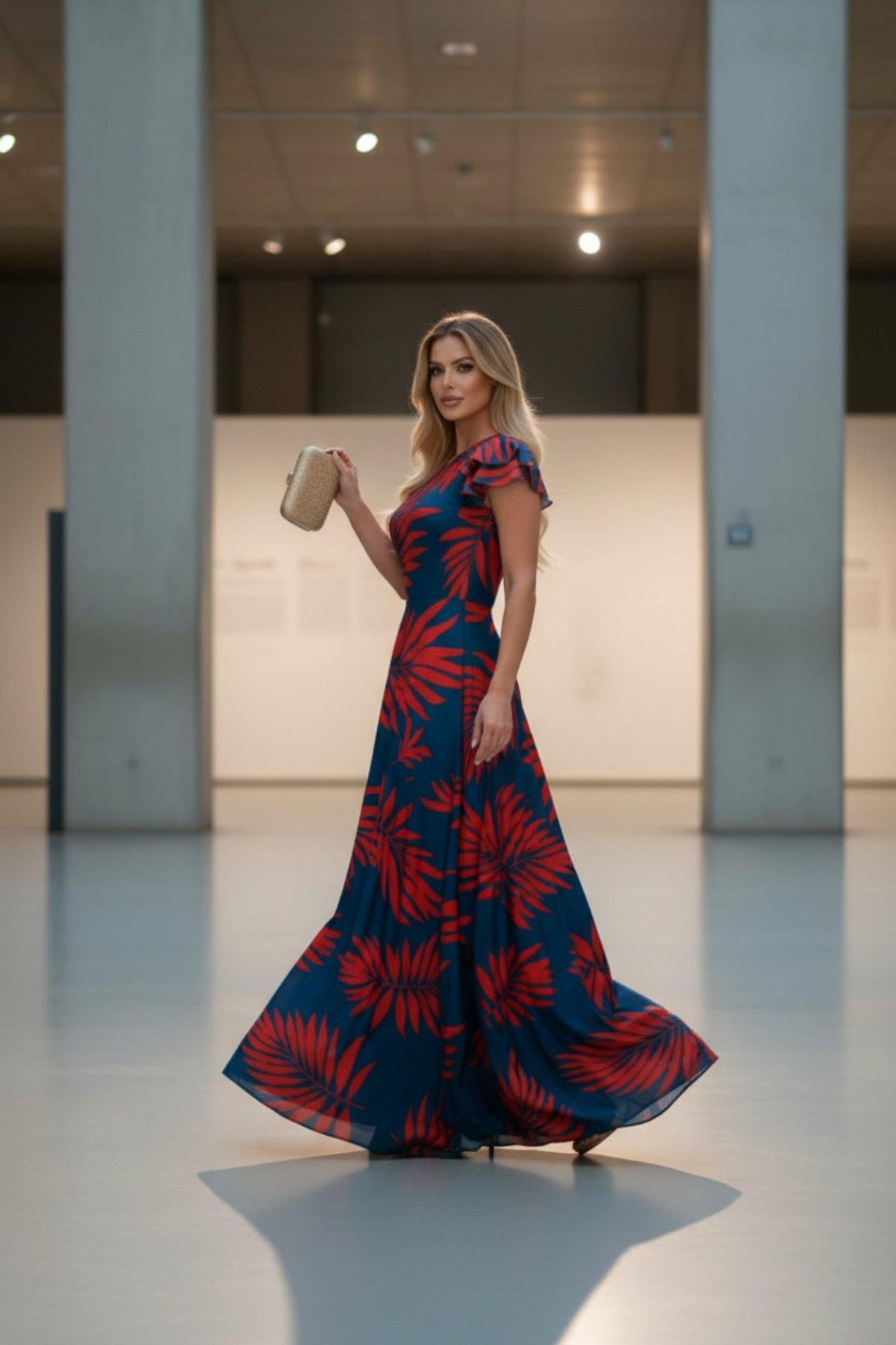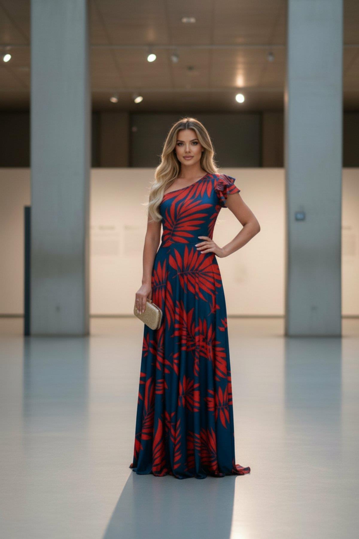 Zarafetin Asimetrik Yorumu: Yaprak Desenli Tek Omuz Maxı Elbise