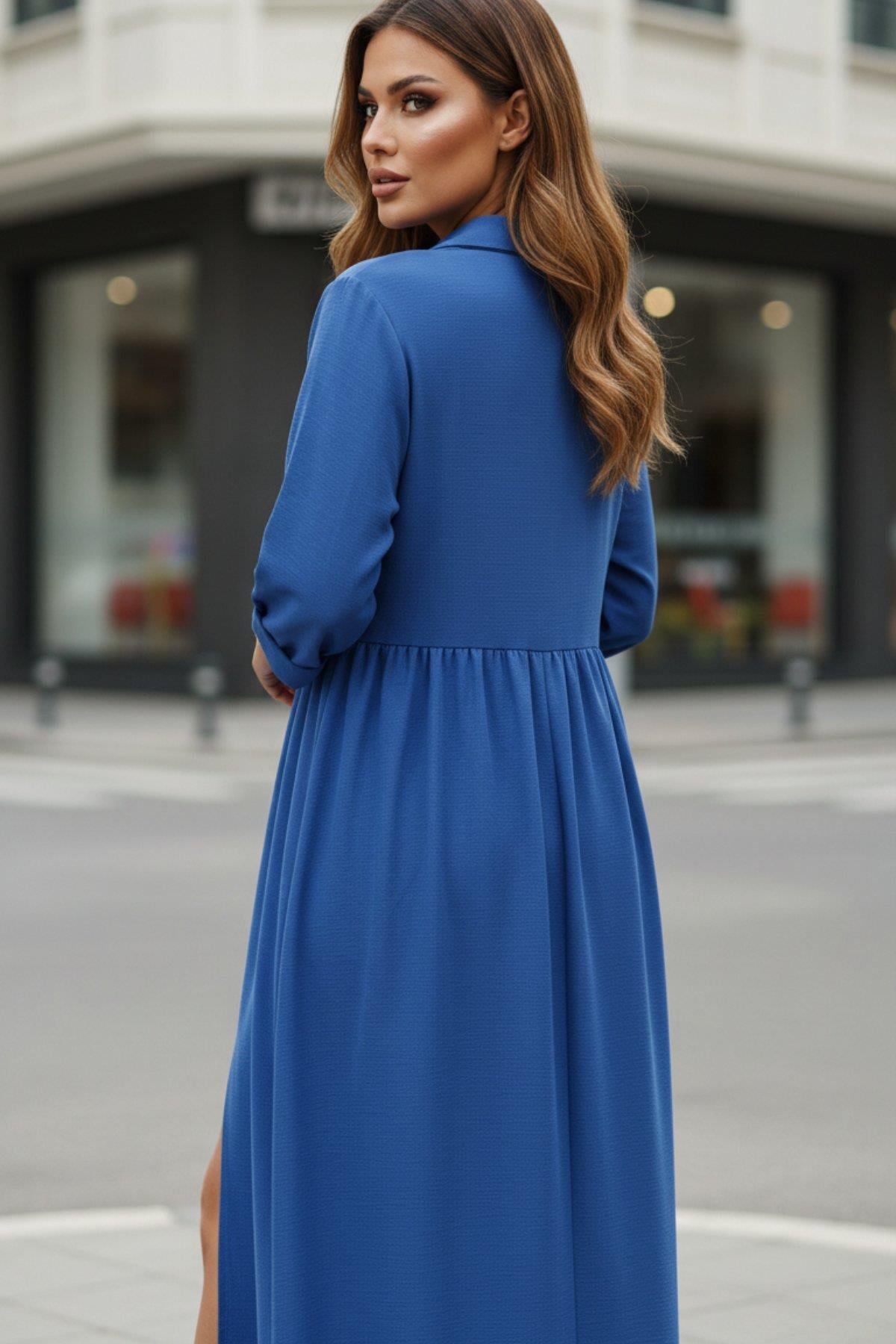 Truvakar Kol Gömlek Yaka Maxi Boy Aerobin Elbise - Mavi