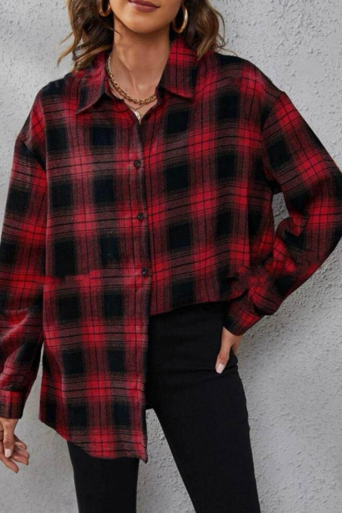 Uzun Kol Düğmeli Dokuma Gömlek -  Bordo