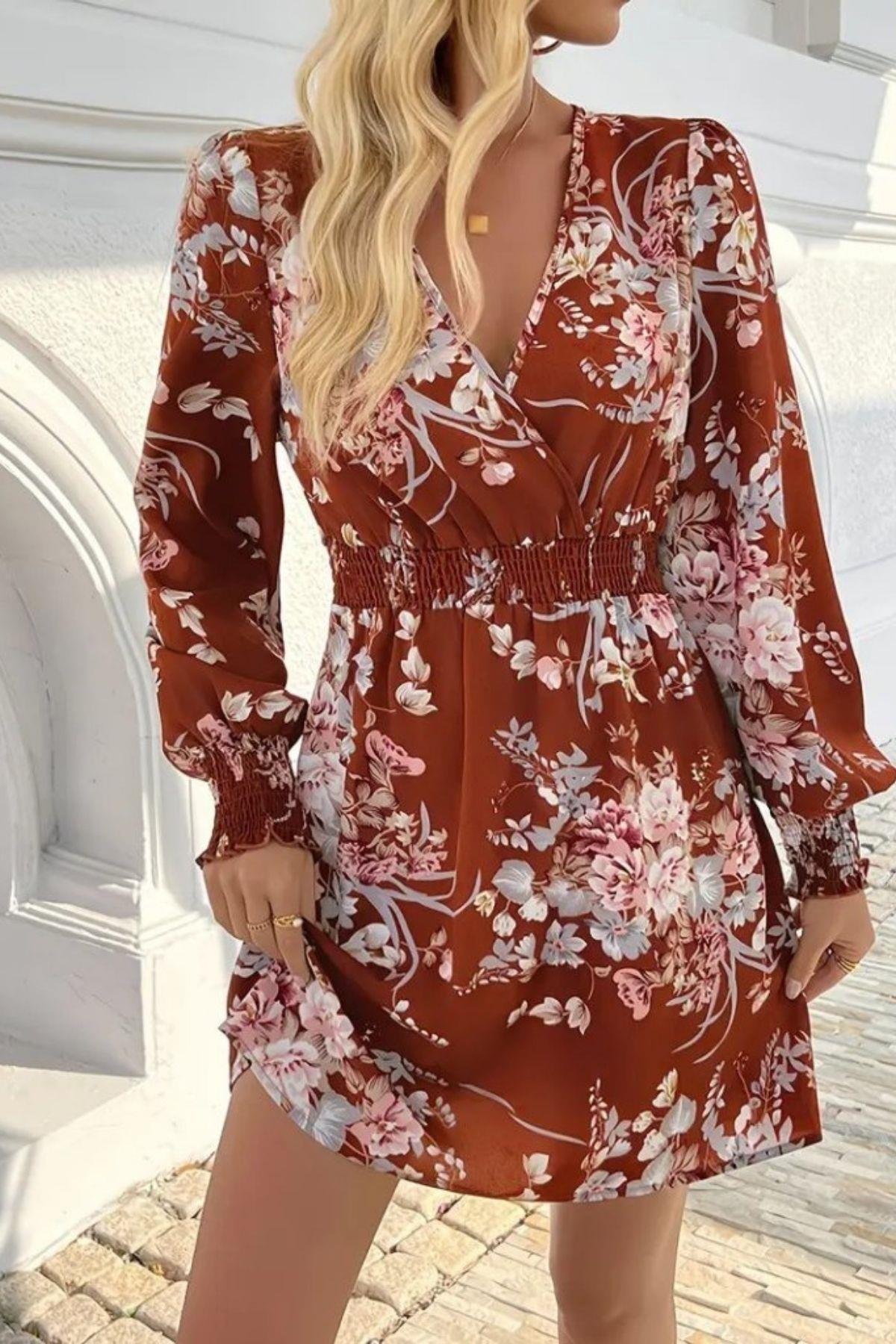 Romantik ve Çiçekli: Kruvaze Yaka Mini Elbise