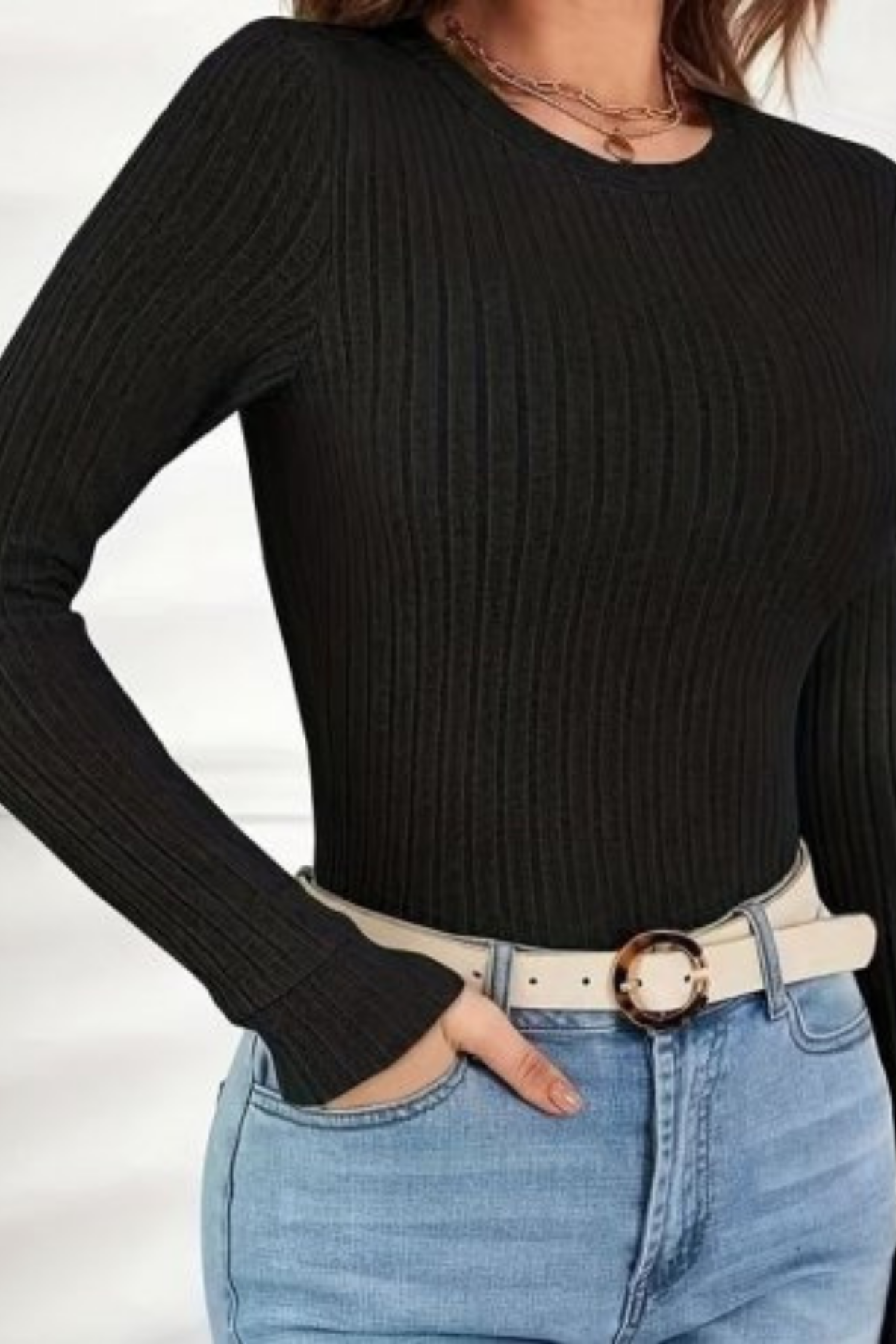 Uzun Kollu Fitilli Kaşkorse Bluz Siyah (JS2538-SİYAH)