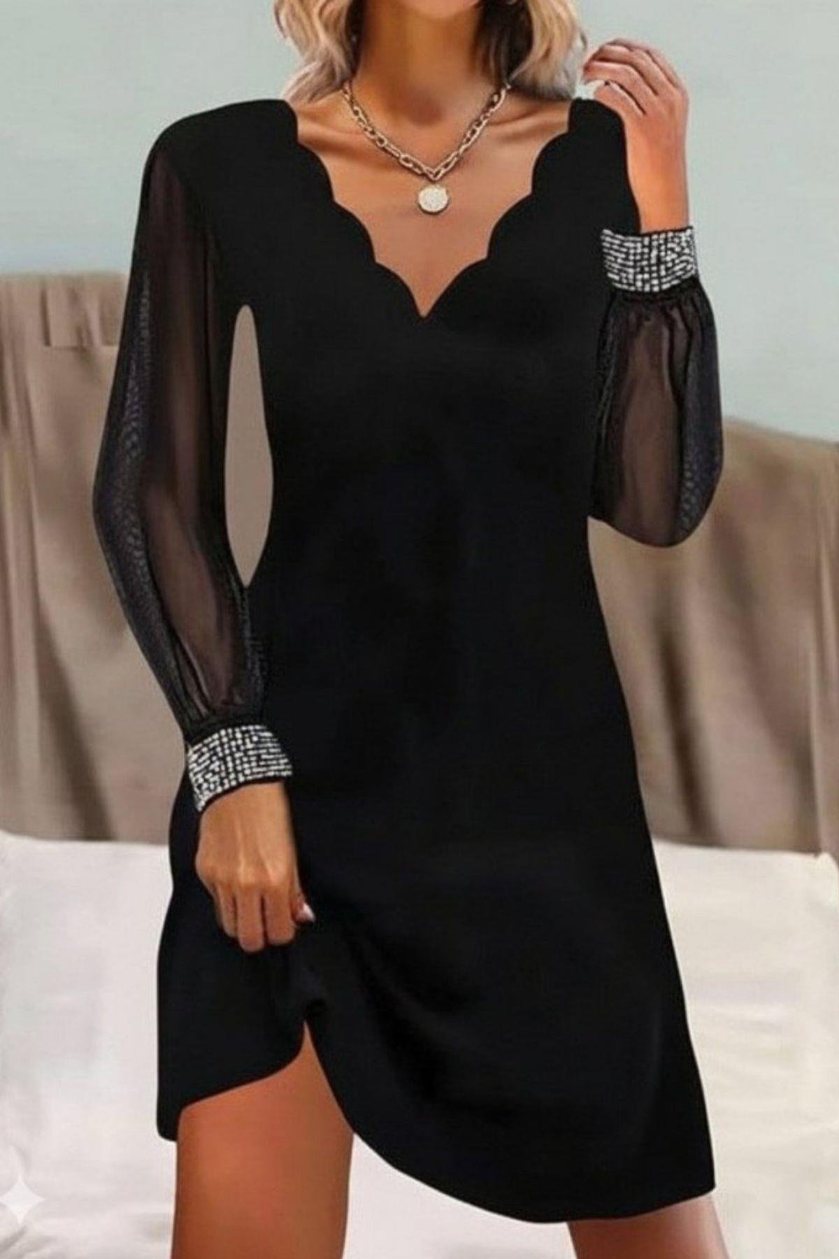 Gecenin Işıltısı: Kalp Yaka, Transparan Kol Mini Elbise