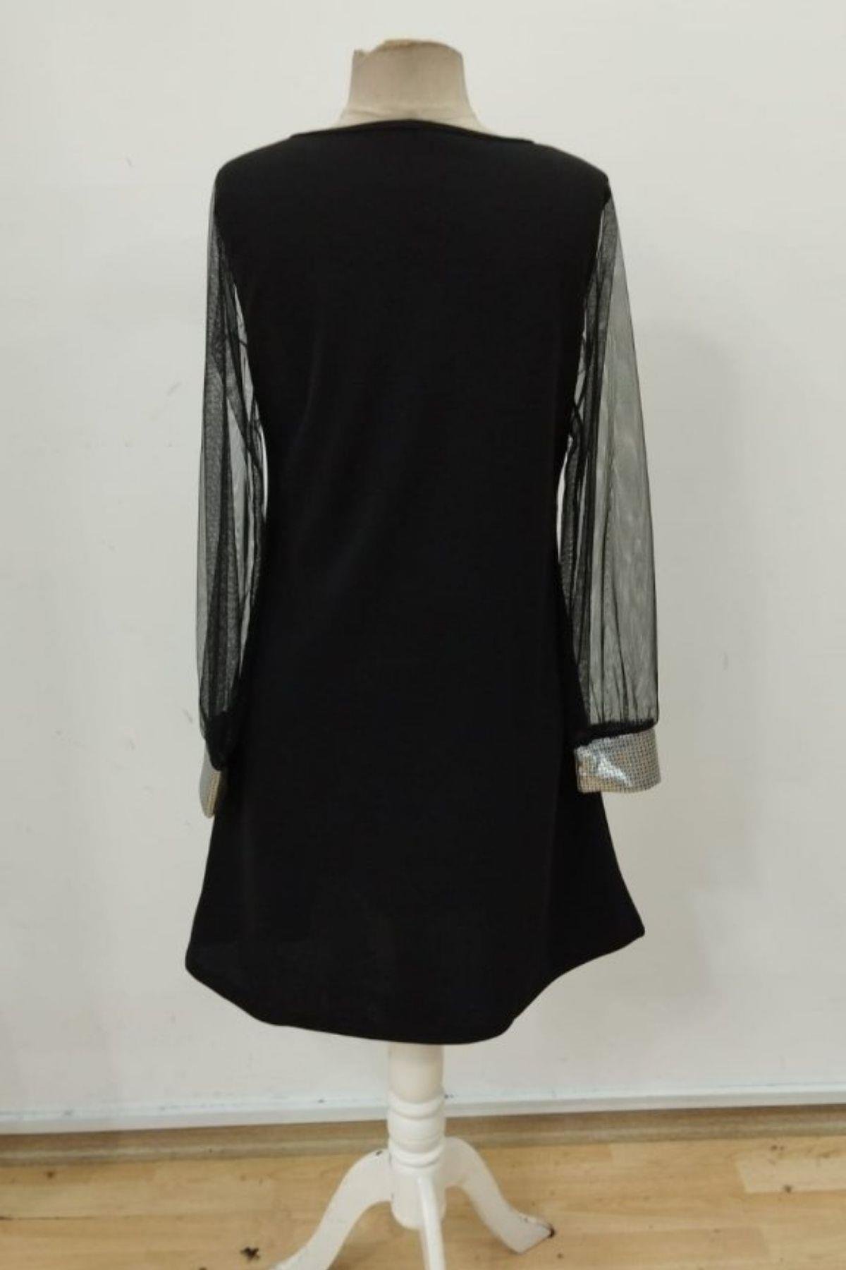 Uzun Tül Balon Kollu Simli Manşetli V Yaka Mini İthal Krep Elbise - Siyah (JS61933-SİYAH)