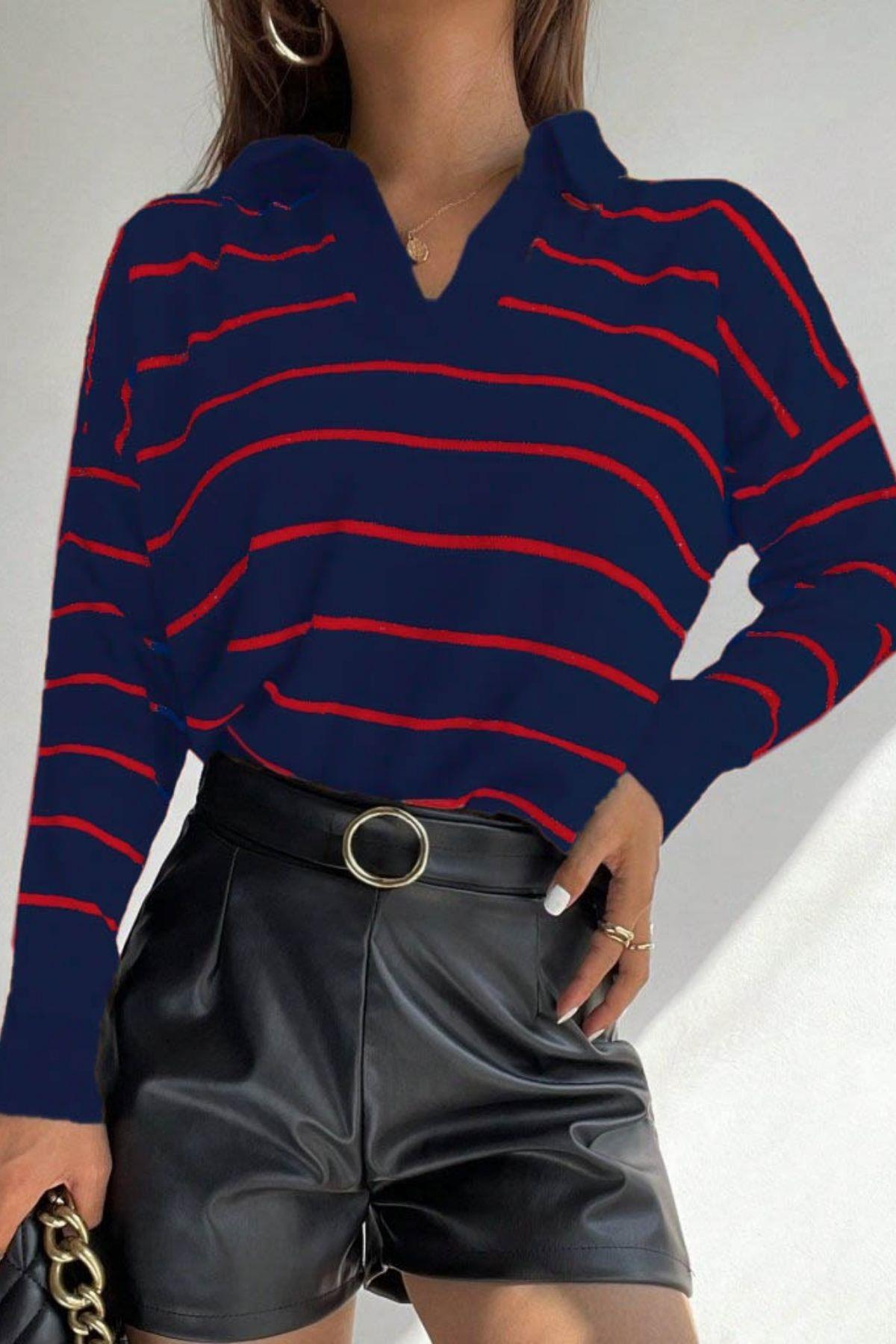 V Yaka Çizgili Triko Bluz - Lacivert (JS2002-LACİVERT)