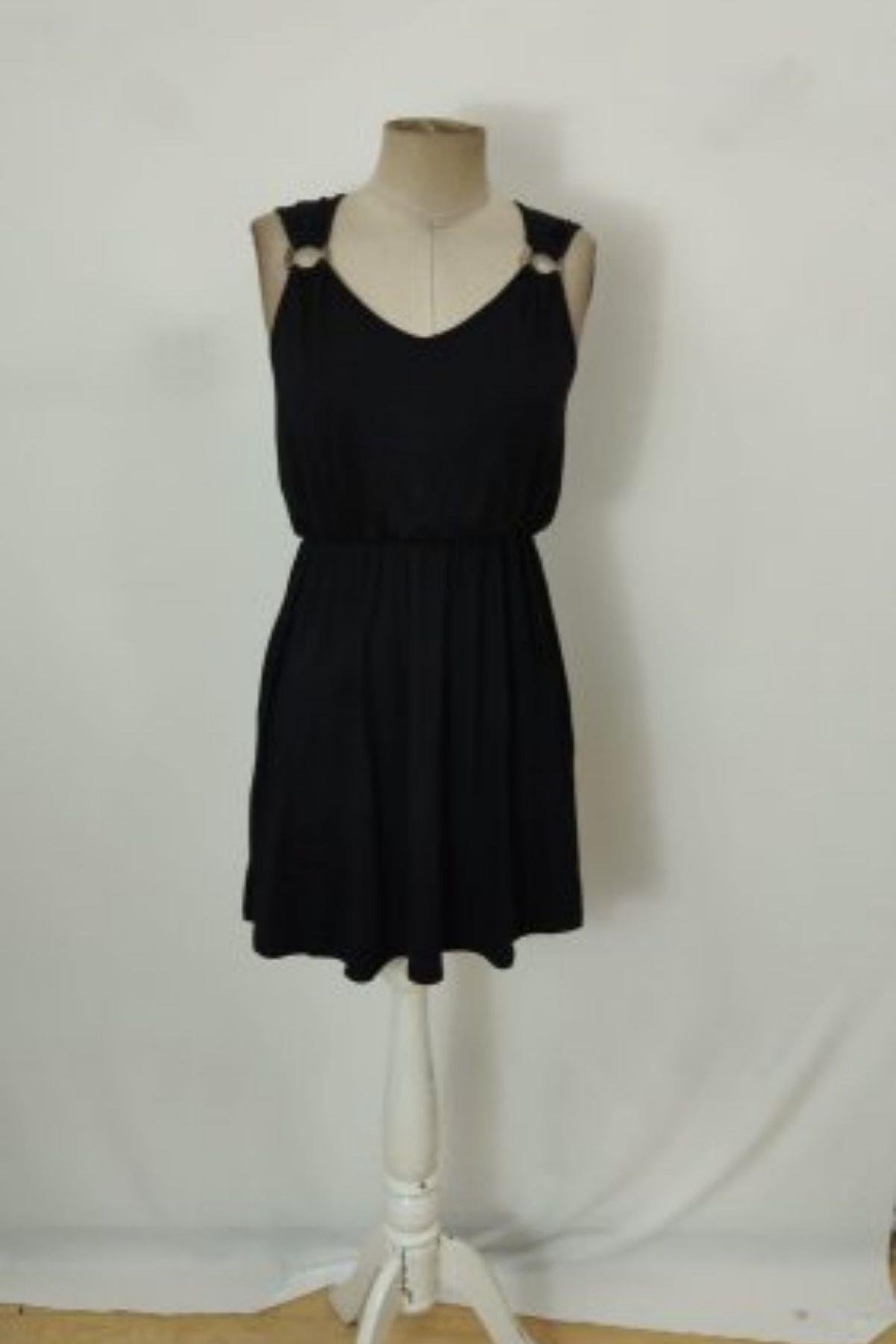 V Yaka Halka Detaylı Askılı Viskon Elbise - Siyah