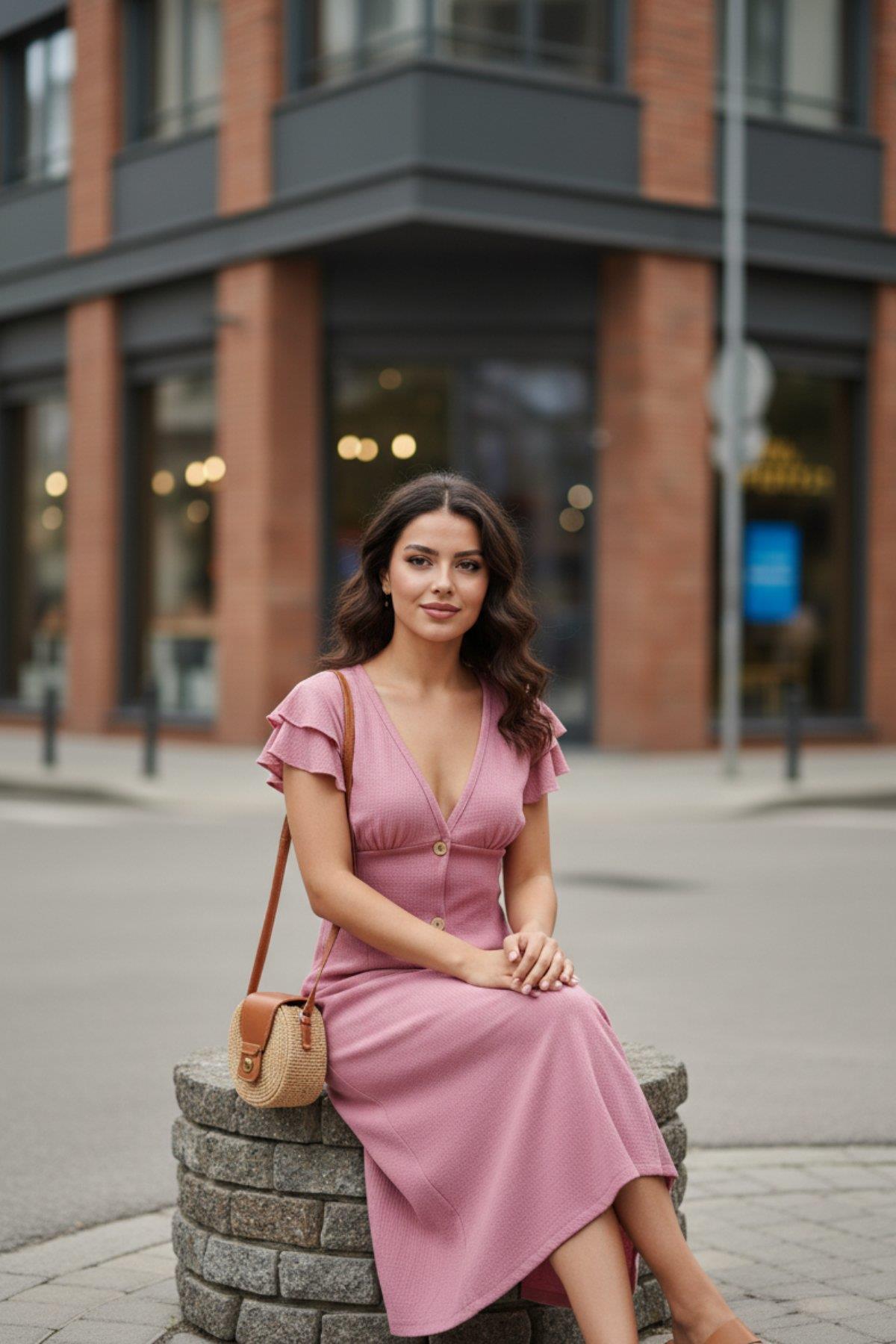 olan Kollu Önden Düğmeli Midi Boy Elbise – Yaz Şıklığının En Romantik Hali!