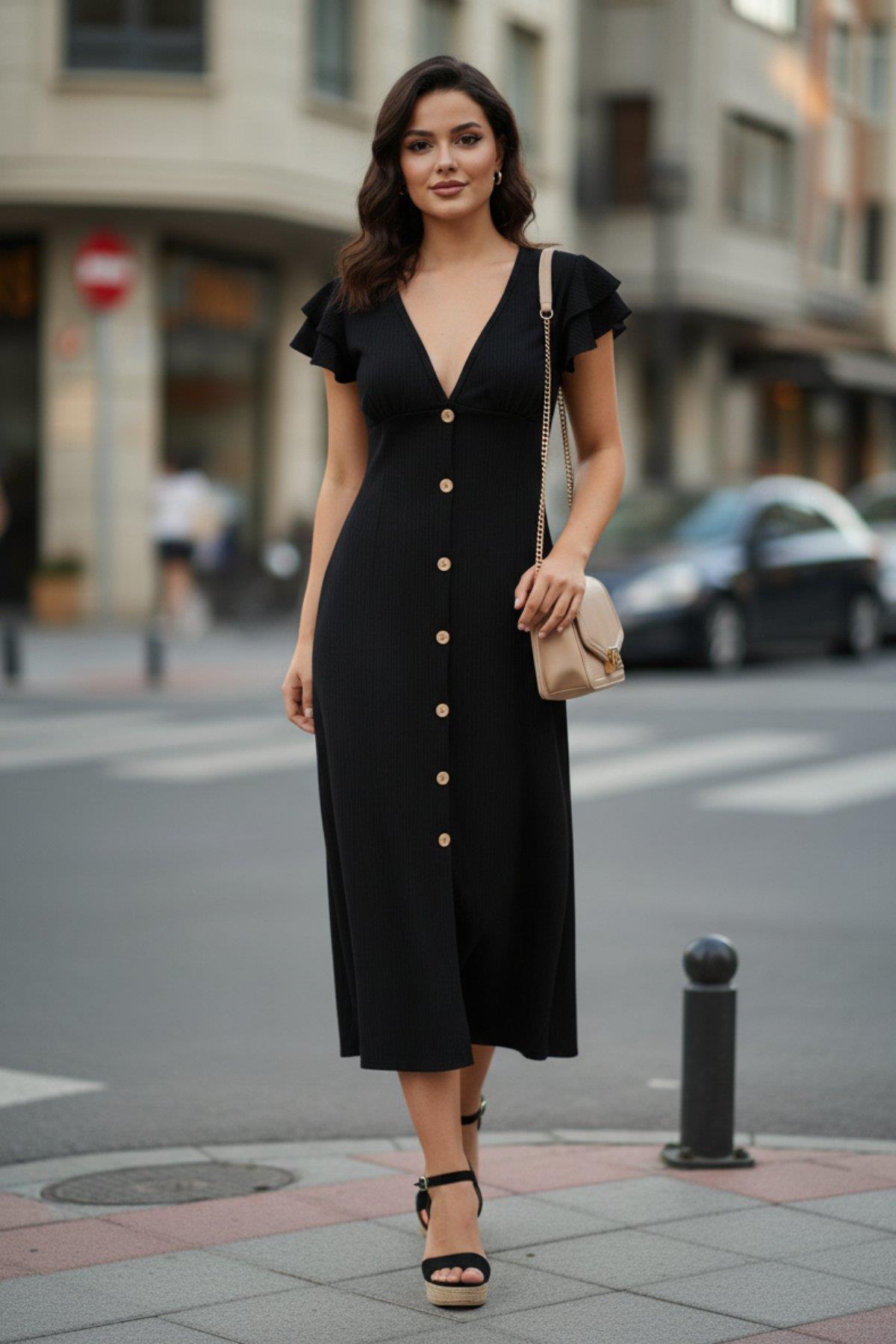 Volan Kollu Önden Düğmeli Midi Boy Elbise – Yaz Şıklığının En Romantik Hali!