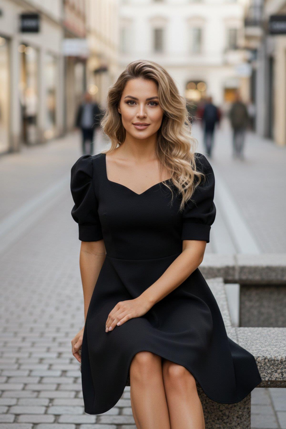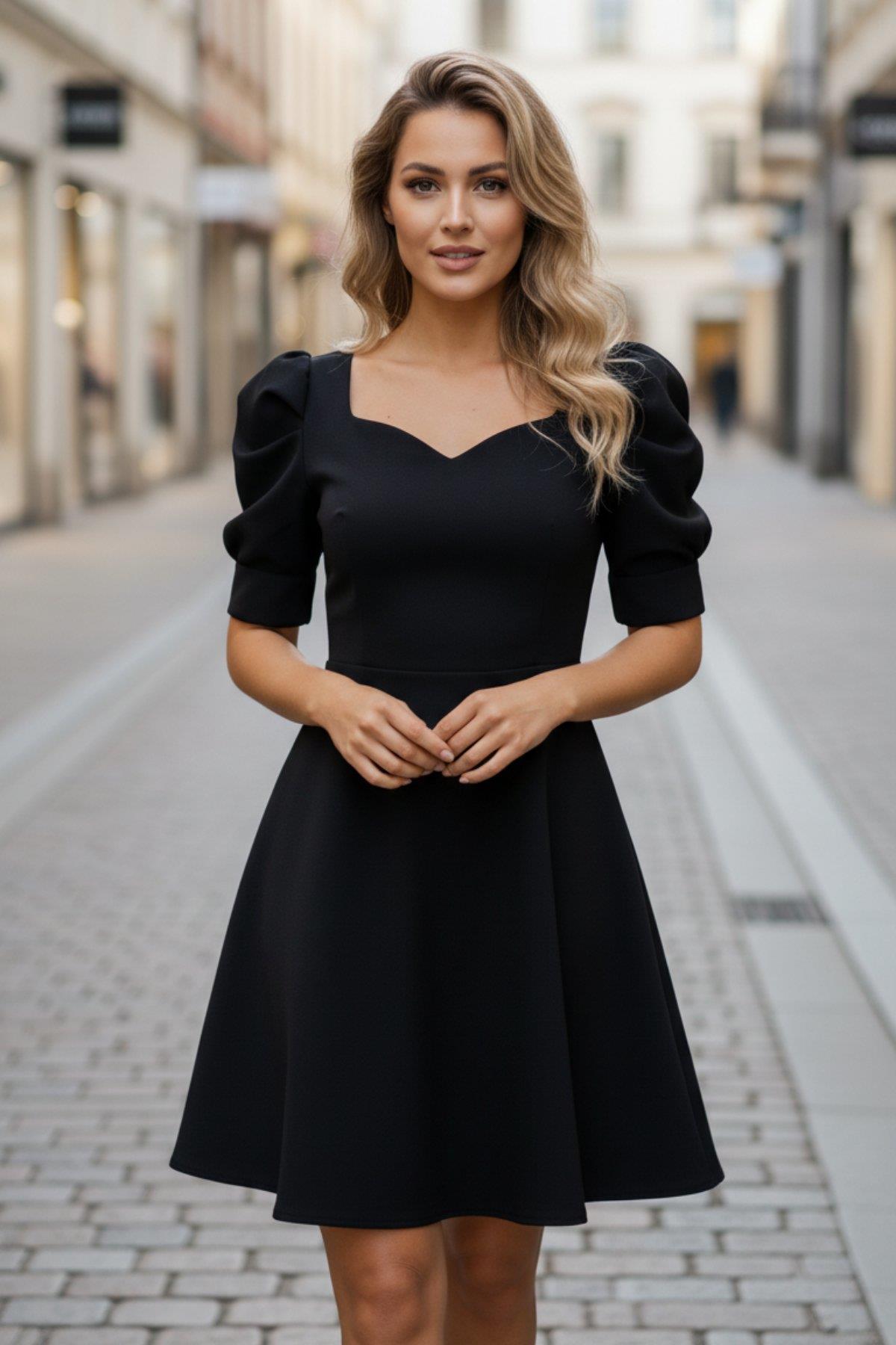 • Çekici ve Feminen Tasarım: Kalp yaka (Sweetheart Neckline) kesimi, boyun ve dekolte bölgesini zarifçe ortaya çıkarır.