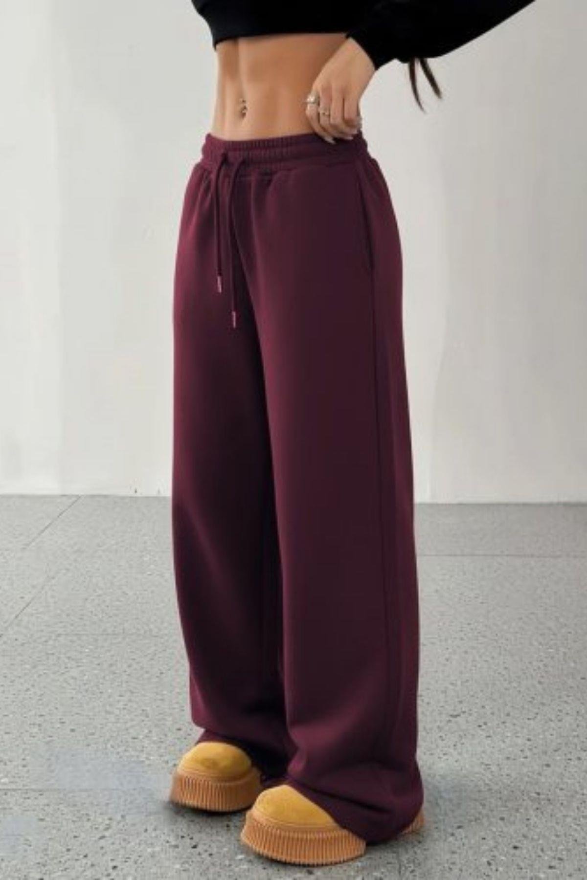 Yüksek Bel Geniş Kesim Dalgıç Pantolon - Bordo (JS46143-BORDO)