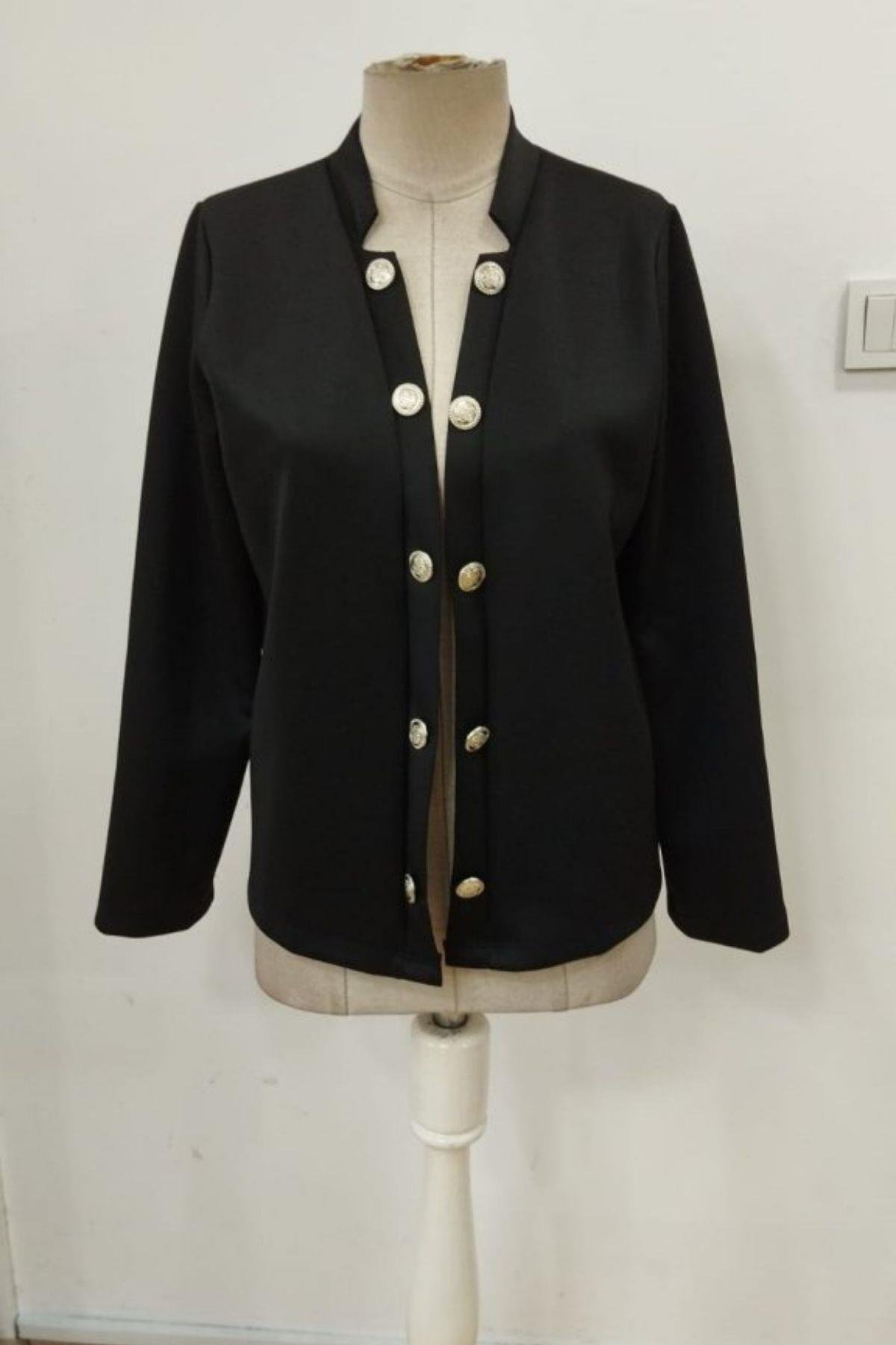 • İddialı Detaylar: Cekete asil bir hava katan, parlak gold (altın rengi) düğmeler, ön kısımda çarpıcı bir kontrast yaratır ve ceketin genel görünümüne lüks bir dokunuş ekler.