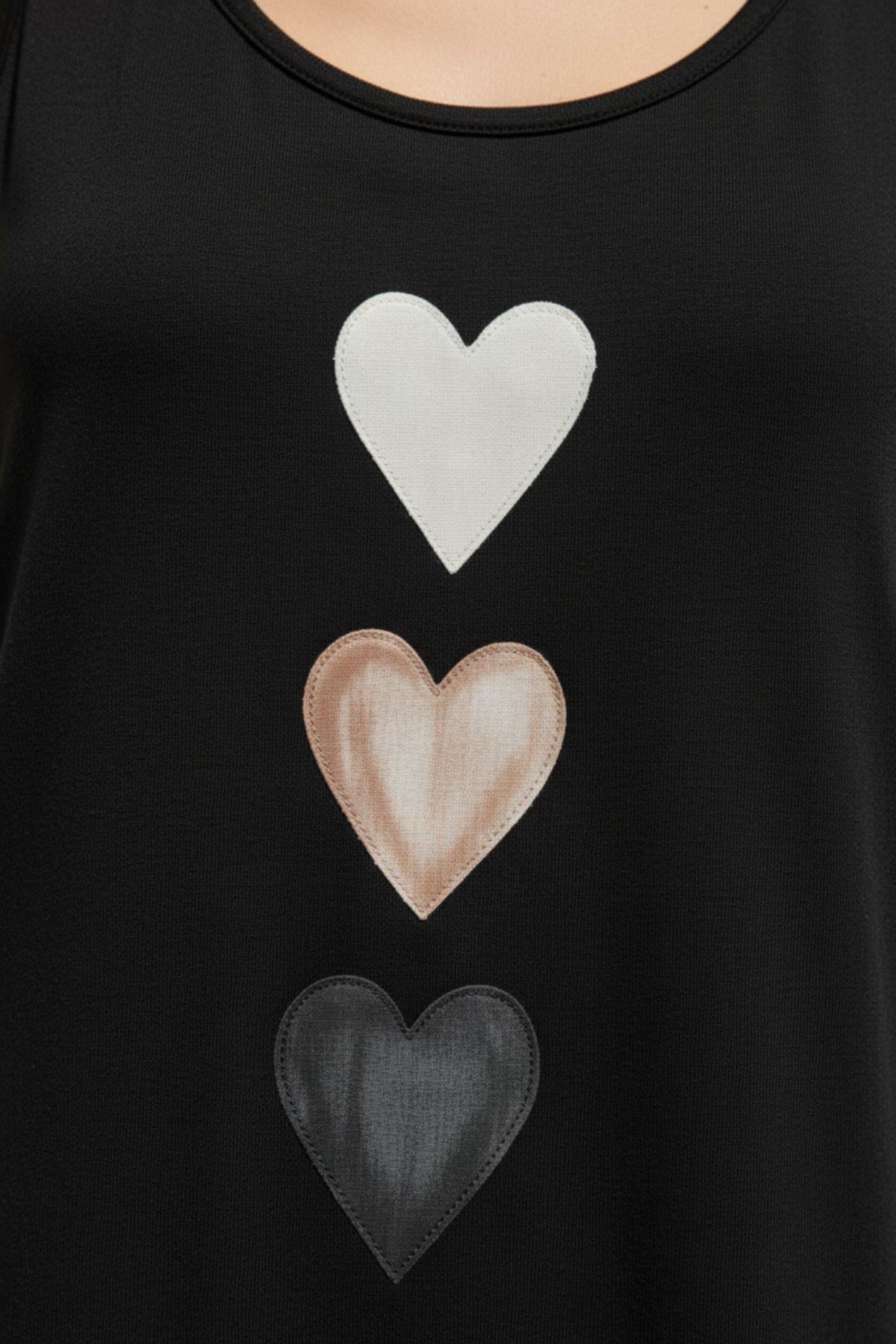 • Özgün Tasarım: Ön gövdede dikey olarak sıralanmış, şık kalp figürlü baskı detayı.